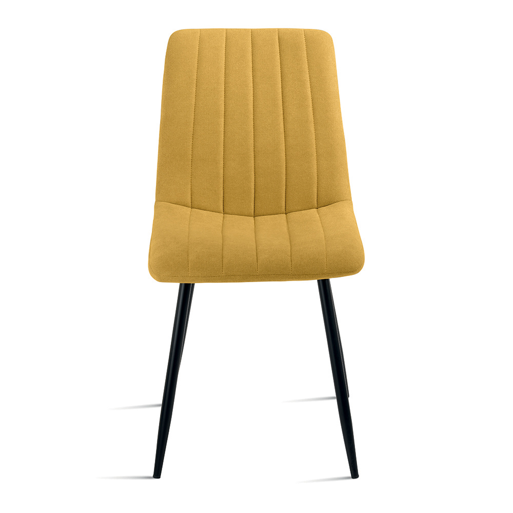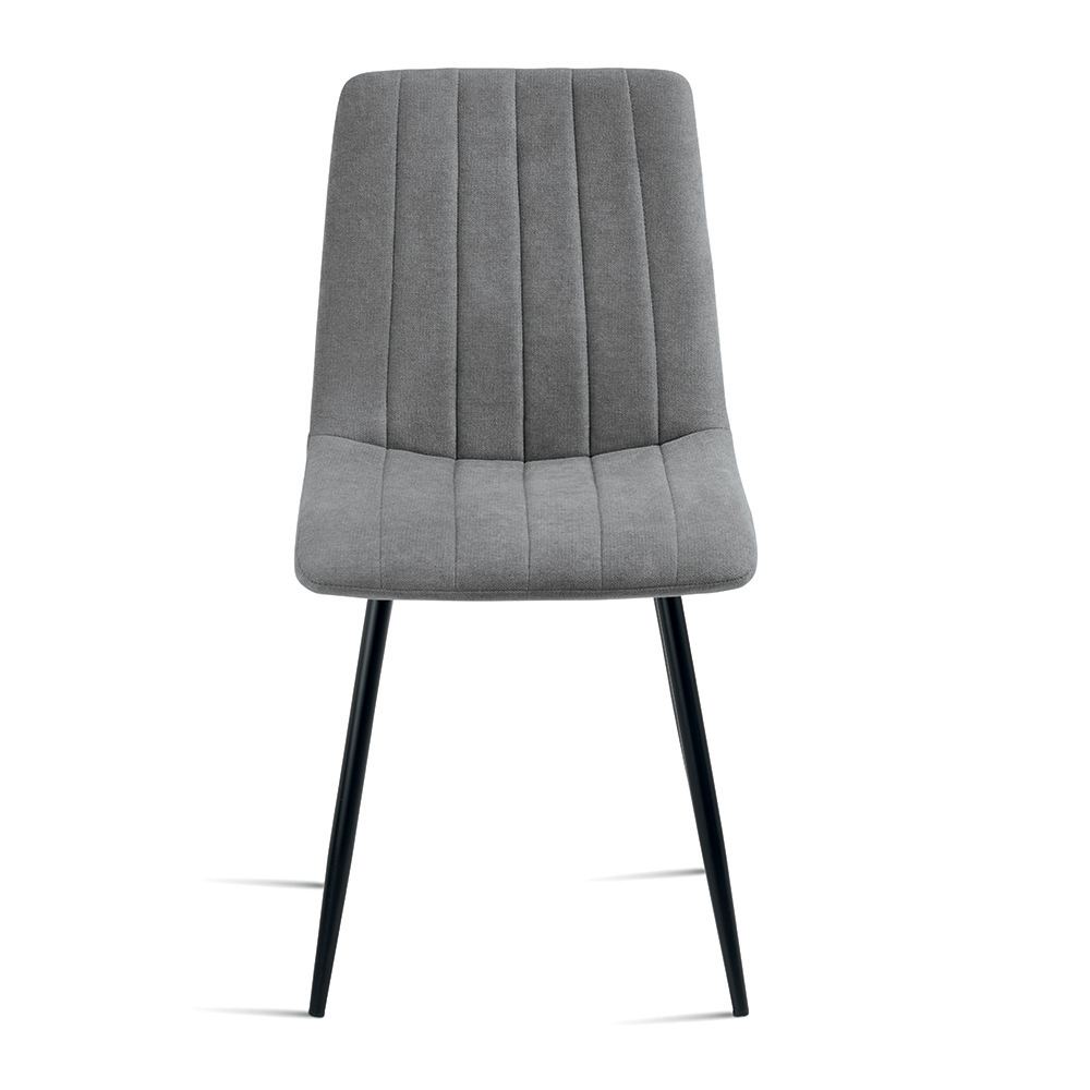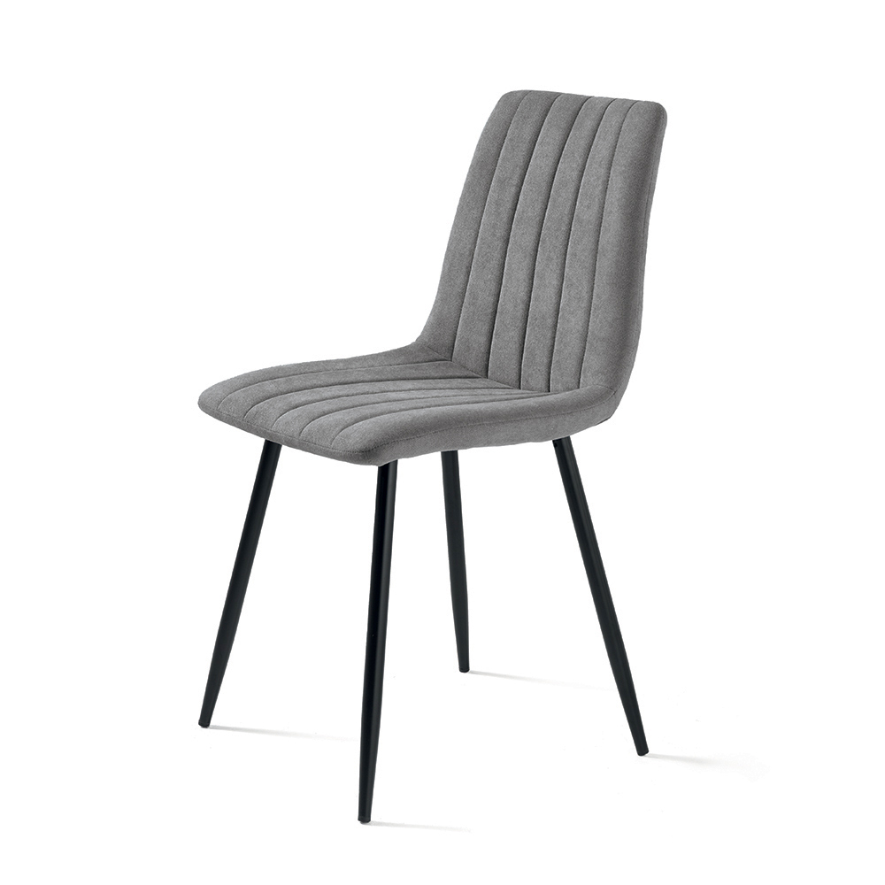 Set elegant de 4 scaune moderne, concepute pentru a mobila cu stil sufrageria , bucătăria sau livingul . Șezutul căptușit din material textil oferă confort și o senzație primitoare, în timp ce cadrul metalic vopsit asigură stabilitate și durabilitate.