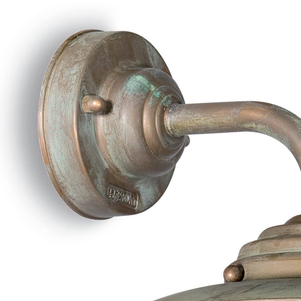 Autentică și atemporală, această aplică de perete pentru exterior evocă farmecul felinarelor tradiționale, reinterpretate cu o notă elegantă. Structura din alamă lucrată manual se remarcă prin finisajul antic , care sporește materialitatea metalului și îi conferă un aspect rafinat, uzat.