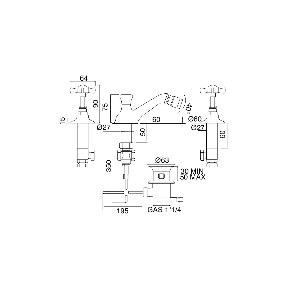 Robinet de bideu cu 3 găuri în stil vintage realizat în Italia de Katerina brass.