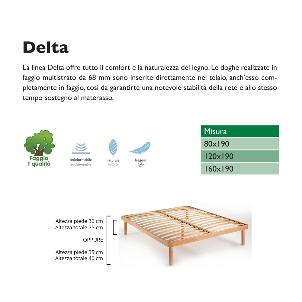 fag multistrat de 68 mm se introduc direct in cadru, care este tot din lemn de fag, astfel incat sa garanteze o stabilitate considerabila a bazei si in acelasi timp sa sustina salteaua.