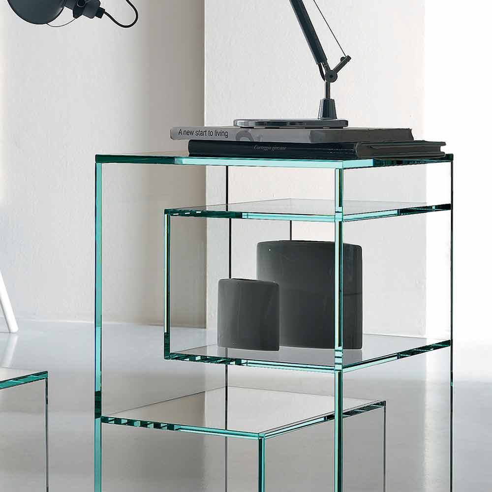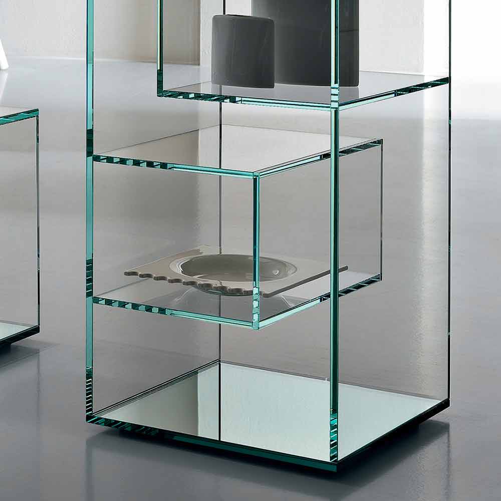 Această bibliotecă cu afișaj se caracterizează prin designul său hotărât și elegant, realizat în întregime din sticlă extra-clară.