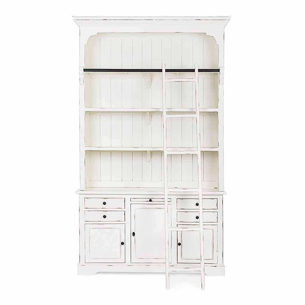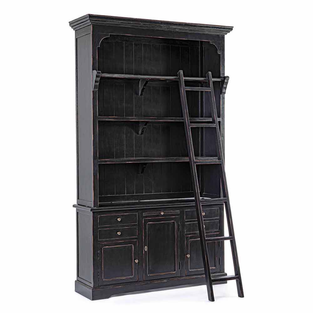 Bibliotecă de podea în stil clasic din lemn de mango și MDF cu mânere din fontă.