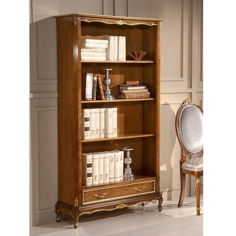 Această bibliotecă în stil clasic este potrivită pentru a se potrivi elegant în orice mediu, făcând-o sofisticată și eficientă. Este realizata din lemn de nuc Bassano cu detalii elegante aurii antic si are un sertar practic si 3 rafturi. Complet realizat în Italia de meșteri pricepuți , finisat cu înțelepciune și gust pentru eleganță. Producția este realizată folosind materiale fine , iar lucrul este realizat manual cu cea mai mare grijă și profesionalism care distinge produsele Made in Italy .