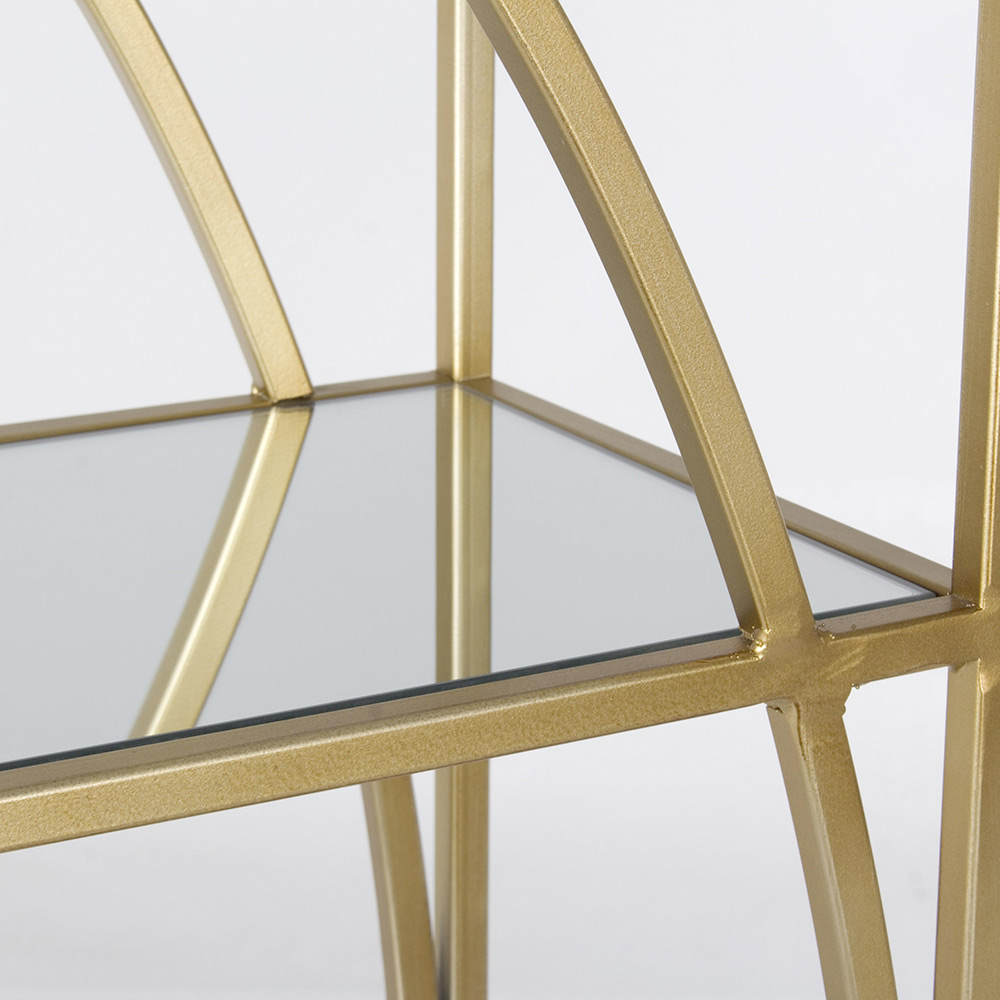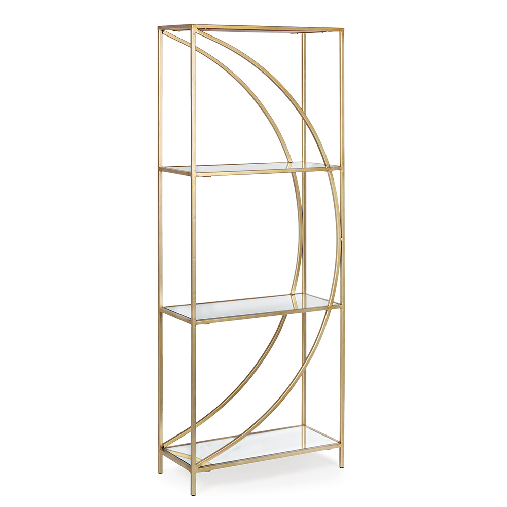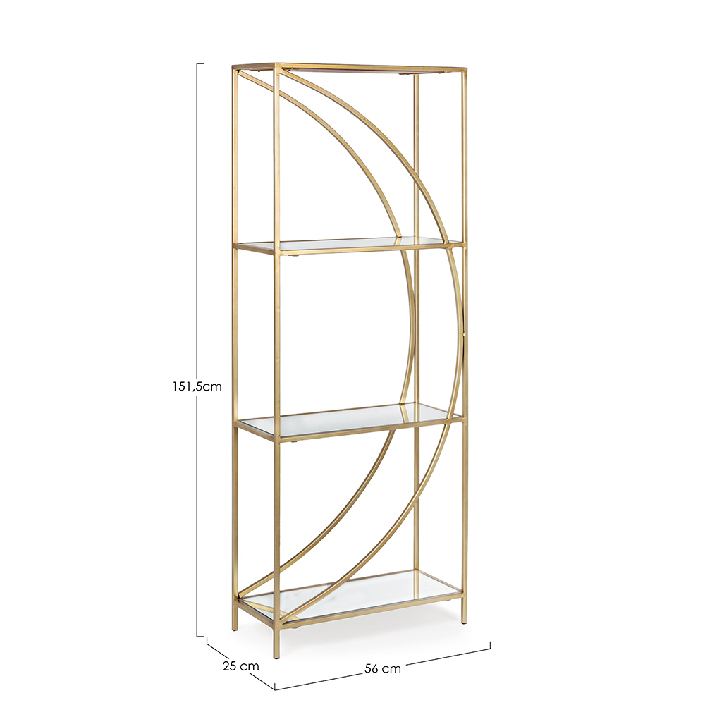 Bibliotecă de oțel de sine stătătoare și 3 rafturi de sticlă cu design elegant.