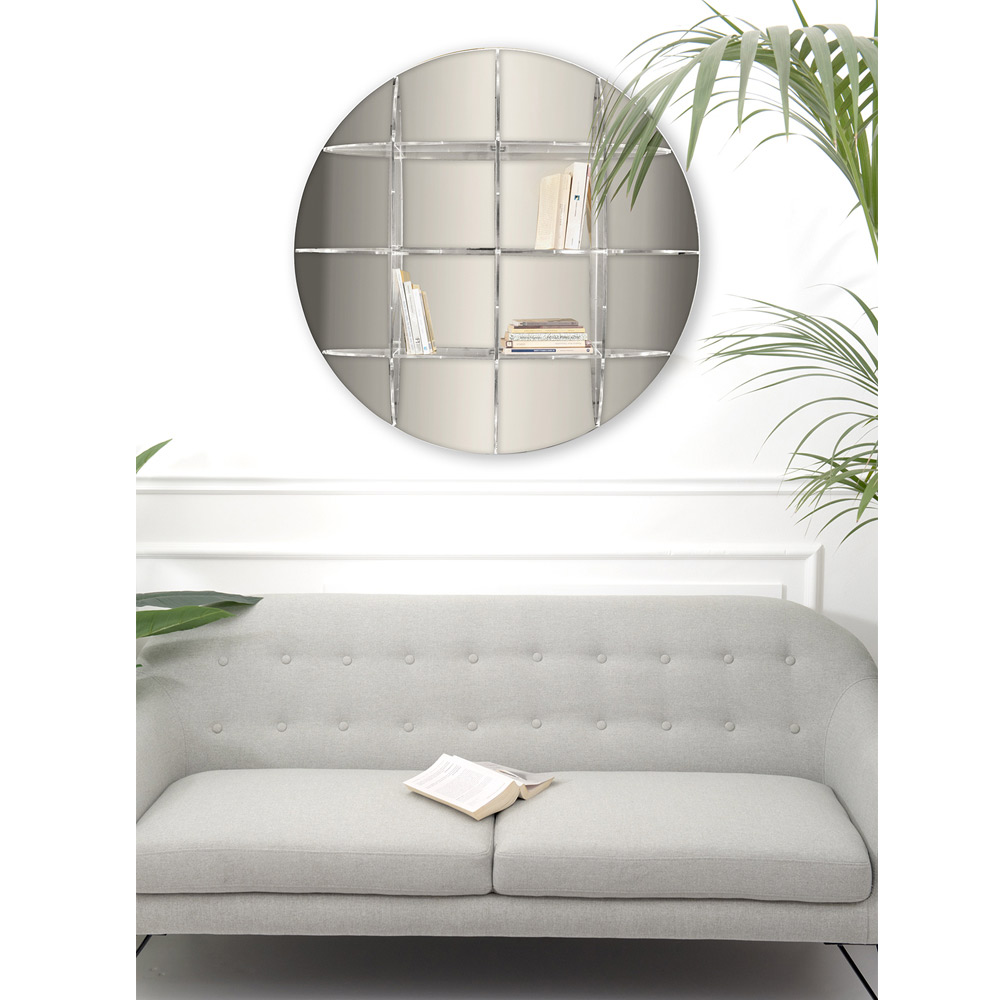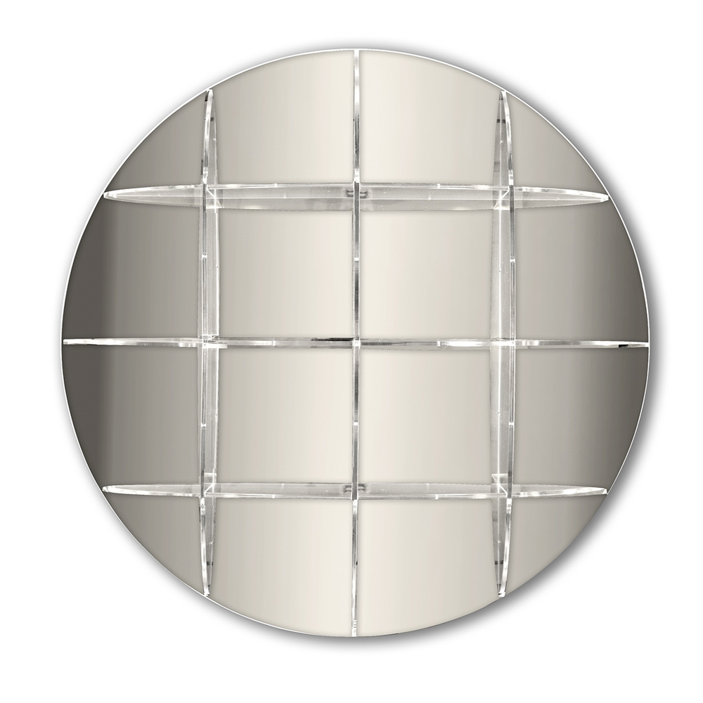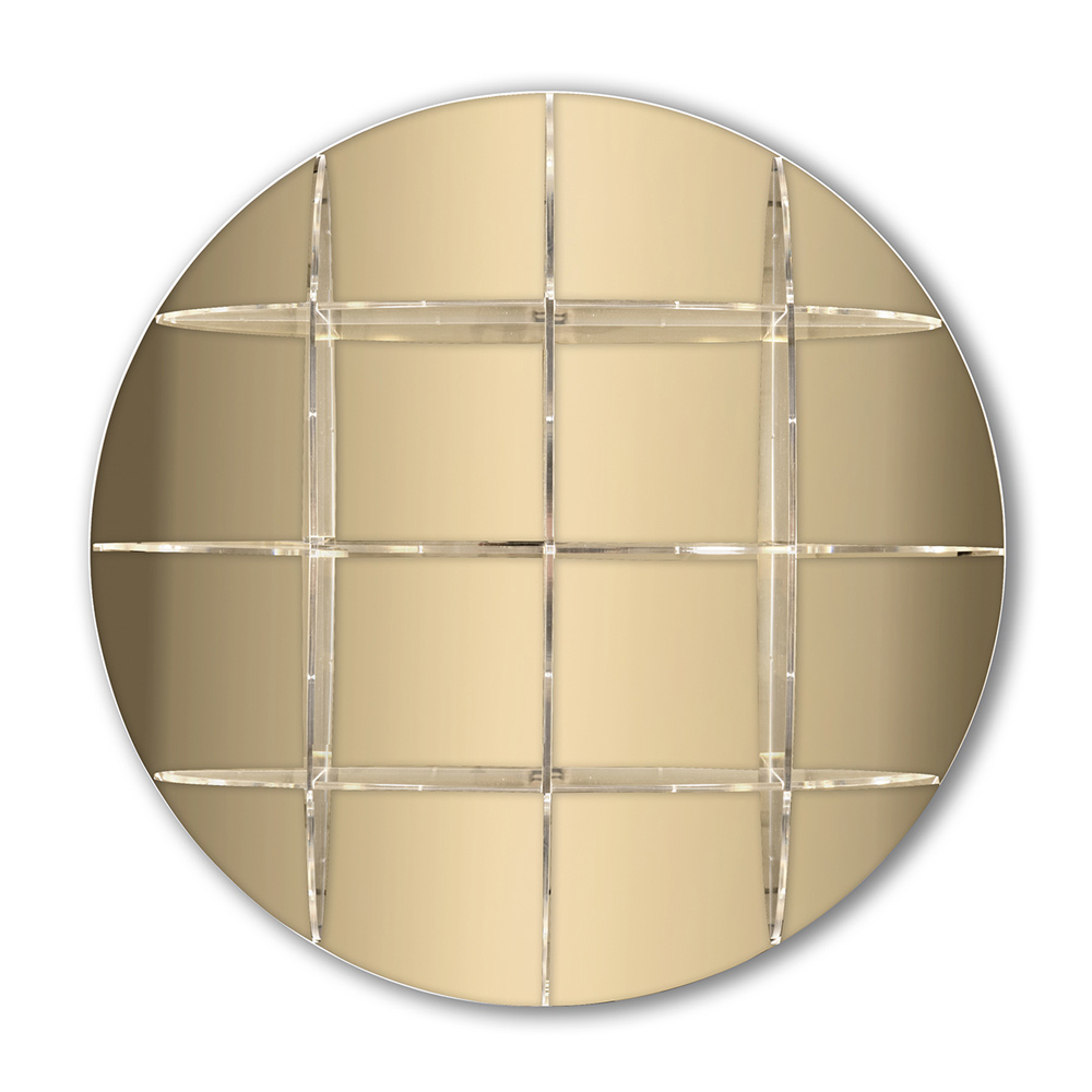 Bibliotecă rotundă de perete din plexiglas auriu sau argintiu Made in Italy.