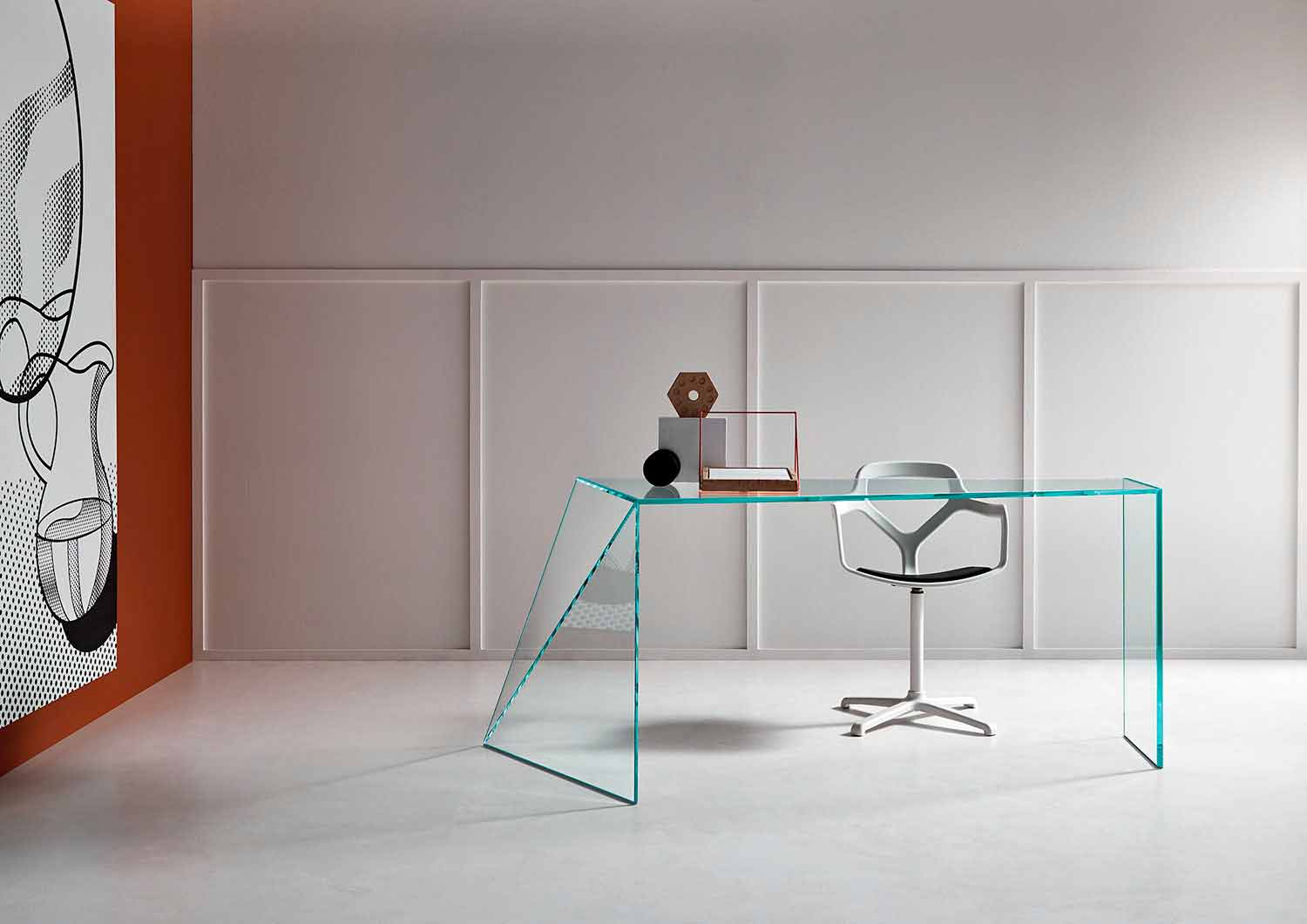 Birou de design modern de lux în sticlă extra-transparentă, realizat în Italia.