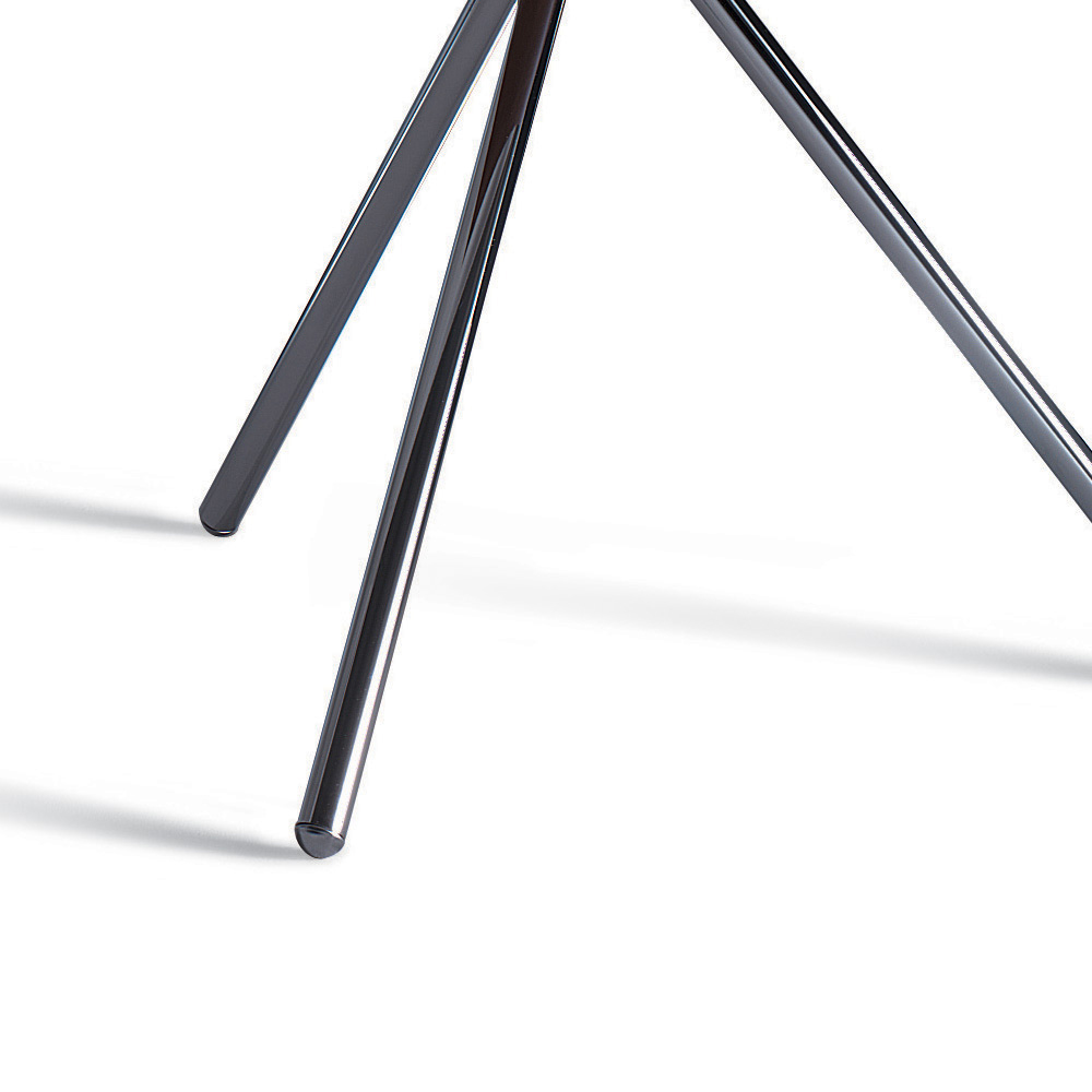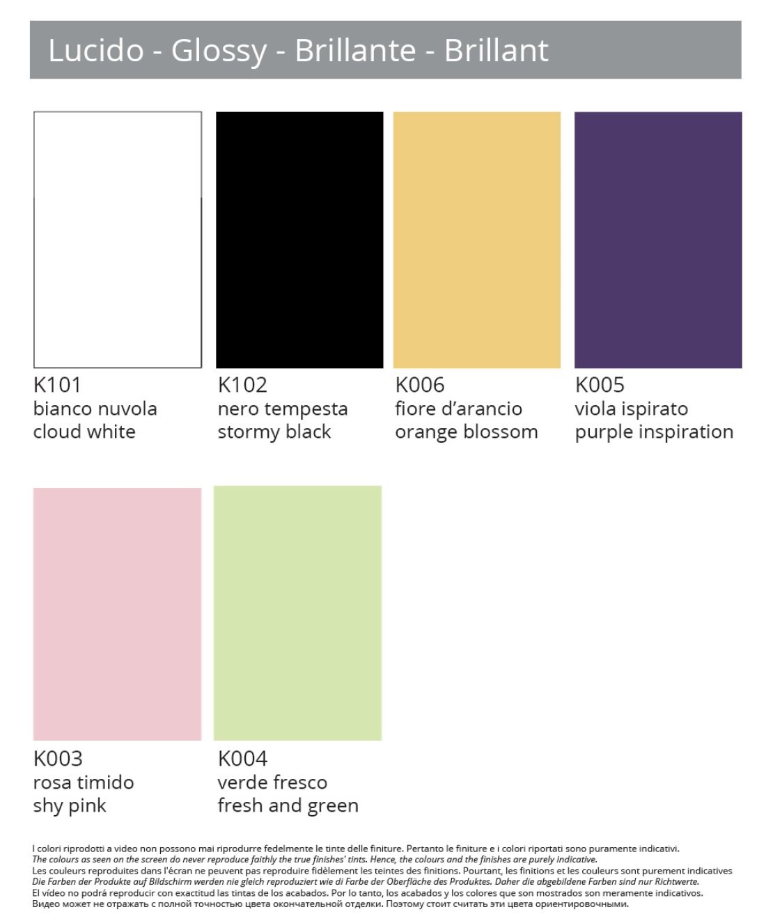 James este îmbogățit și de o cutie de depozitare din aglomerat melaminat cu fațadă și tivita cu ABS, montată pe un trepied din fier cromat, disponibil în finisaj alb.