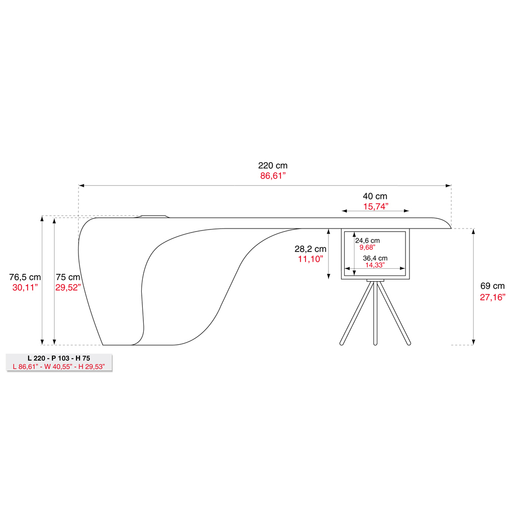 Acest birou este format dintr-o carcasa turnata autoportanta din poliuretan de inalta densitate, disponibila in trei variante diferite: Lucios, Embossed Mat sau in varianta metalica. Odata ce ai ales finisajul biroului, poti alege si varianta de culoare care ti se potriveste cel mai bine.