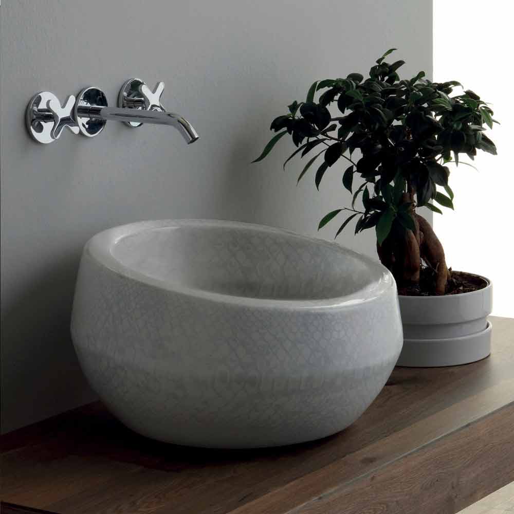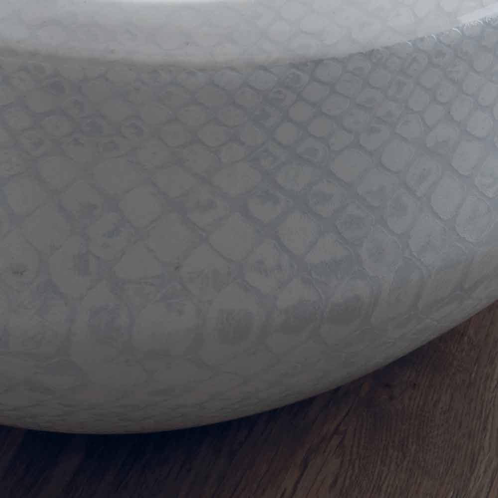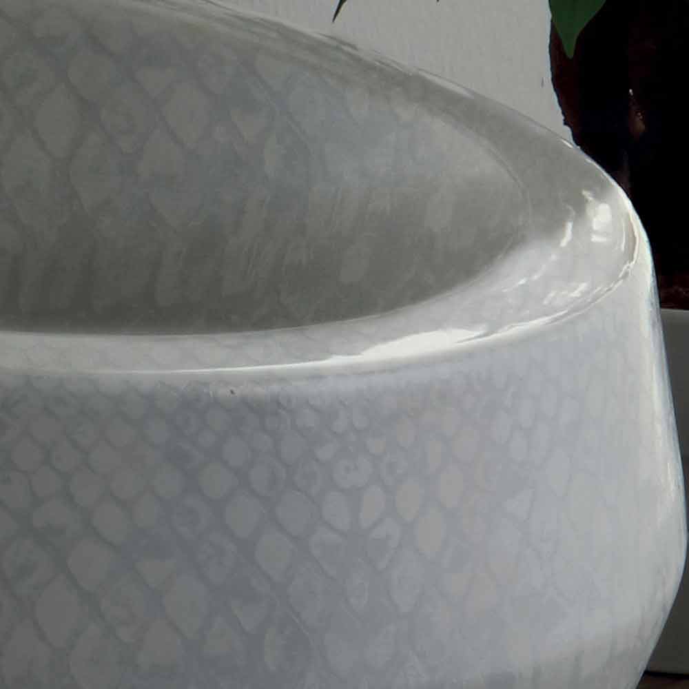 Elisa este un lavoar de ceramică de blat, cu finisaj de piton alb, îngrijit manual de meșterii italieni până în cel mai mic detaliu.
