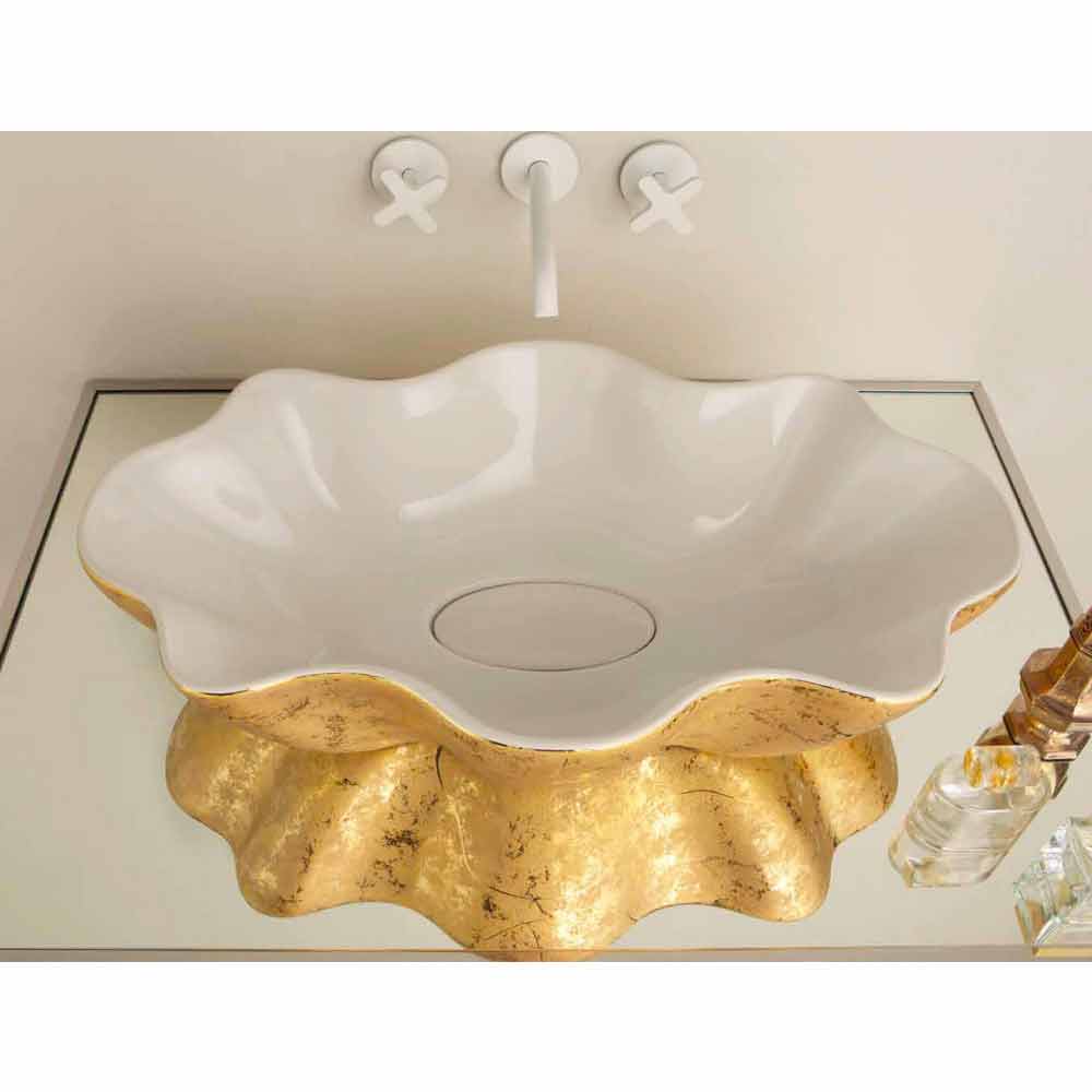 Lavoar de blat design din ceramică albă și aurie Cubo fabricat în Italia