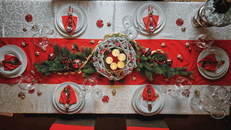 Pregătirile pentru sărbători și Crăciun încep de la masă: fețe de masă, farfurii și pahare coordonate