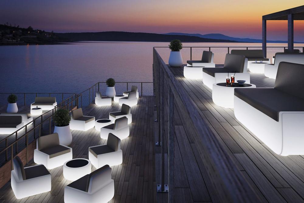 Din ce în ce mai des vedem în restaurante, ferme, hoteluri sau case care au o grădină sau un exterior de îmbunătățit, prezența mobilierului luminos. Acest tip de mobilier se întinde pe mai multe câmpuri, de la mese și scaune la vaze și pietre false pentru piscina.