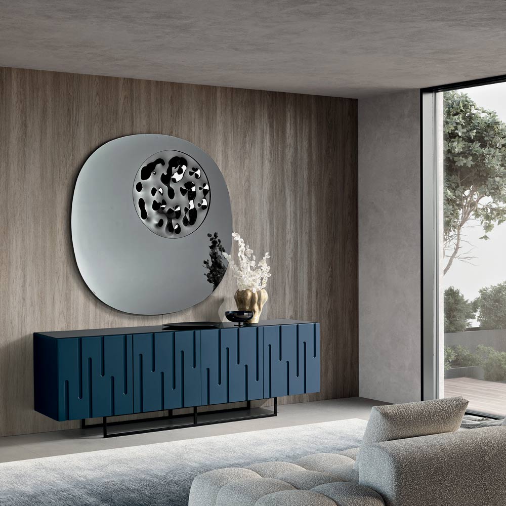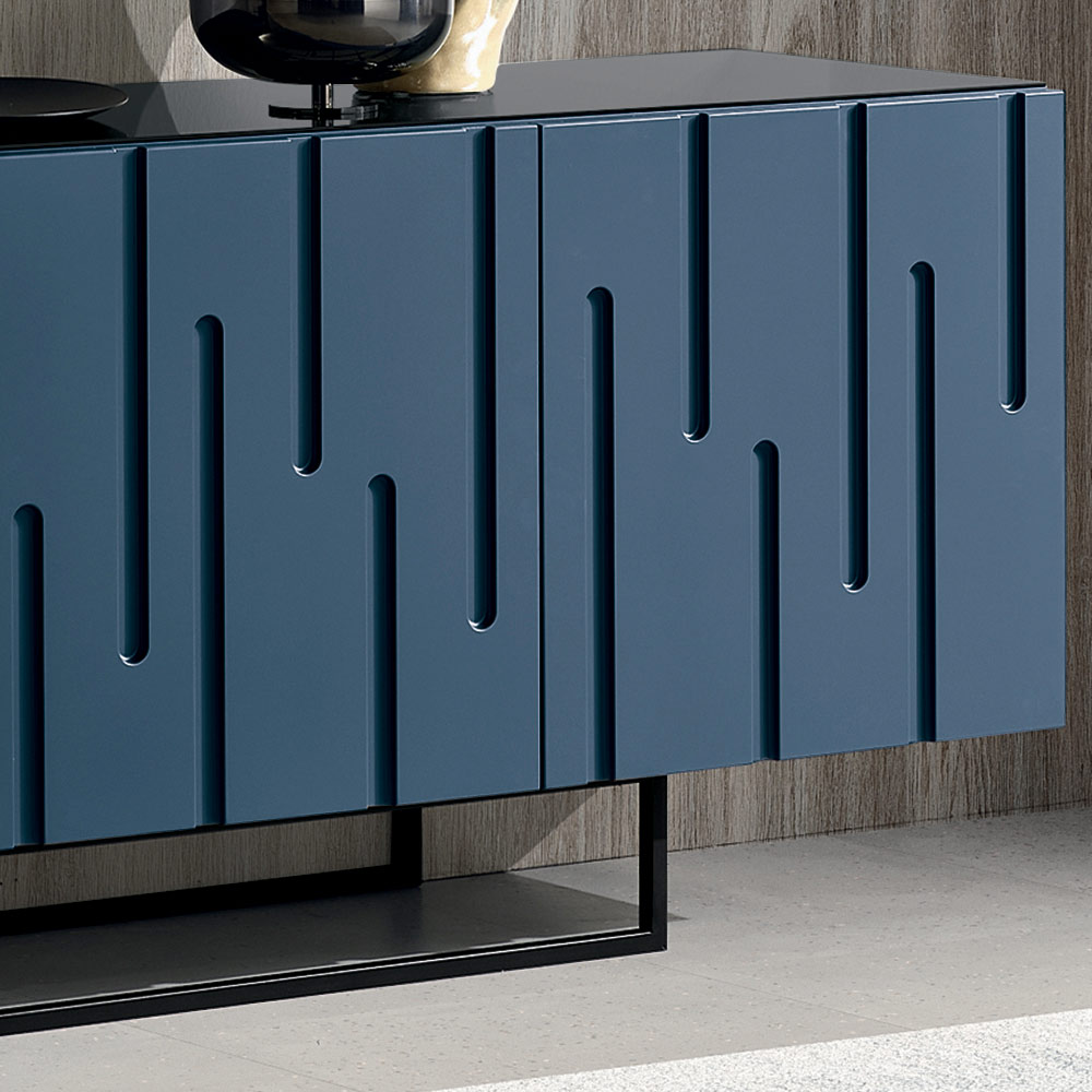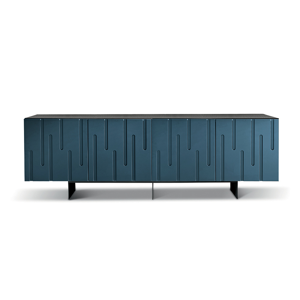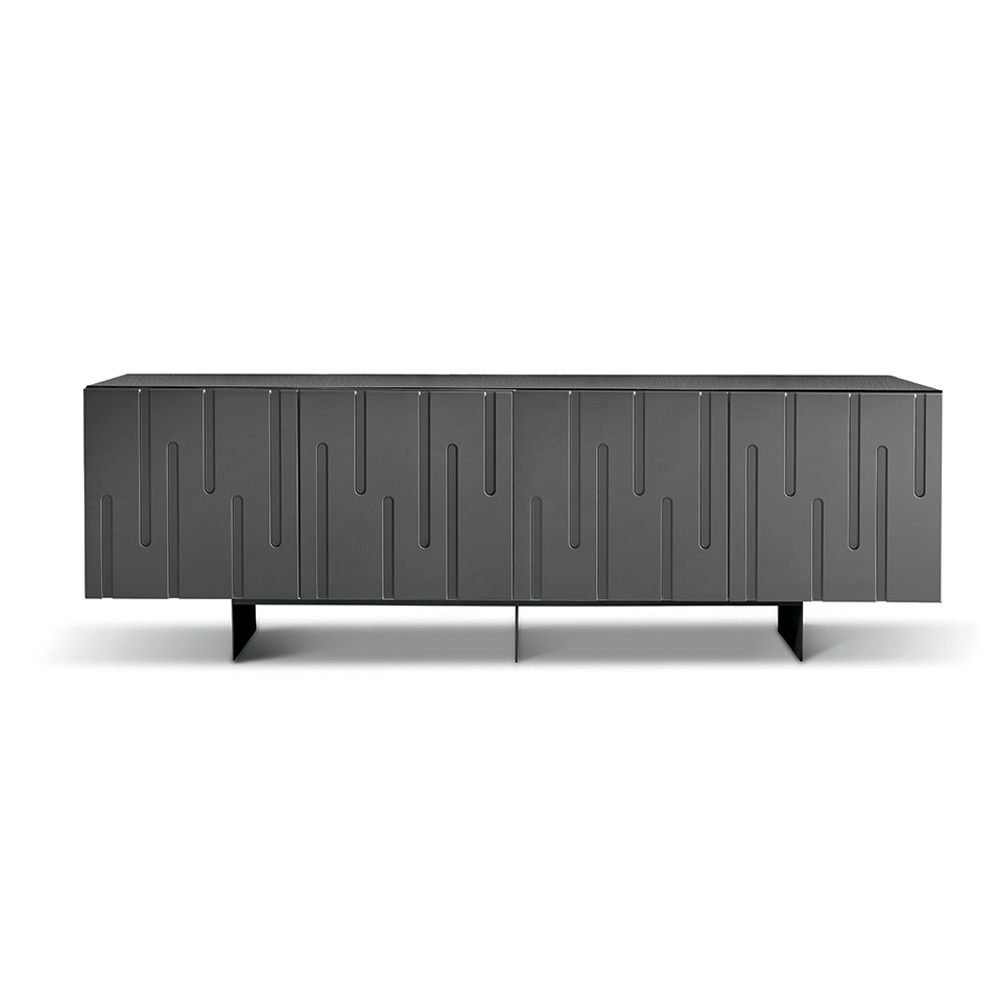 Bufet de design fabricat în Italia cu uși gravate cu efect de stalactită și bază metalică