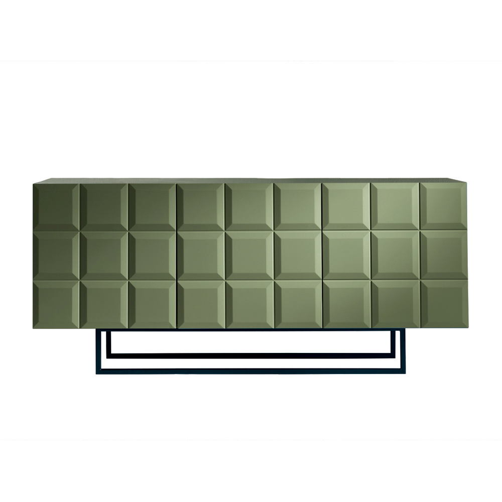 Bufet de design fabricat în Italia cu uși geometrice în relief și bază metalică