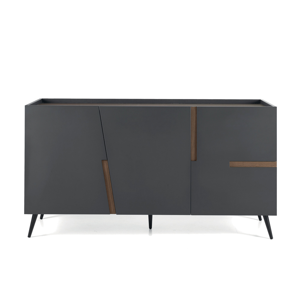 Baza din metal vopsit , disponibilă în diverse configurații, simplifică structura, conferind o lejeritate vizuală și o notă contemporană. Datorită echilibrului dintre estetică și funcționalitate, acest bufet este o soluție ideală pentru organizarea spațiilor cu stil.
