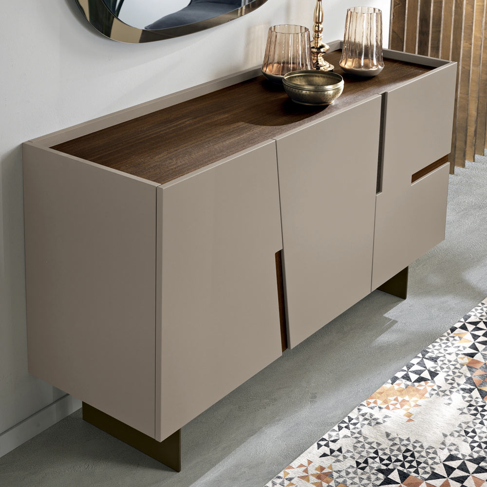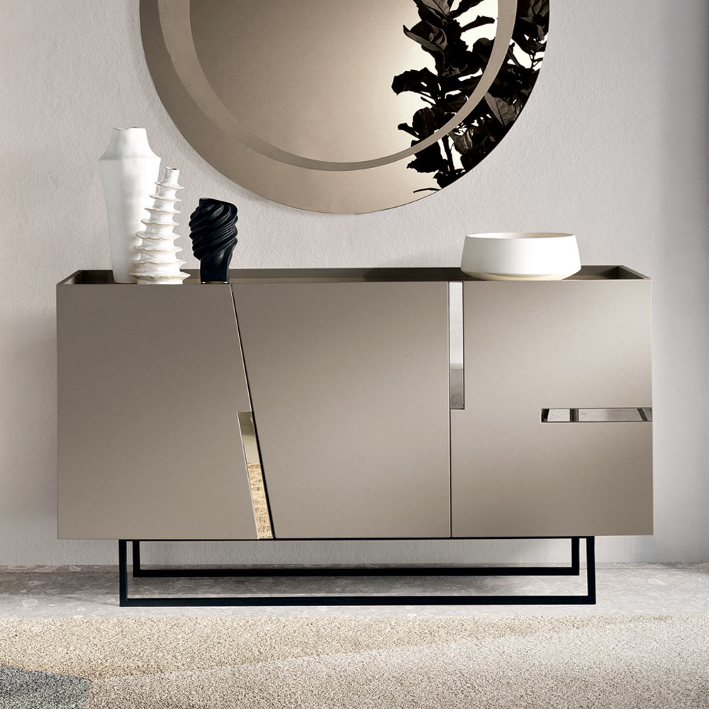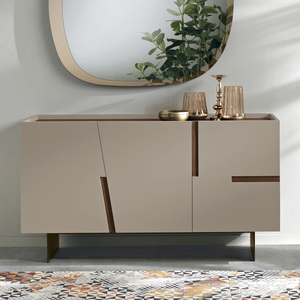 Bufet de design fabricat în Italia cu uși lăcuite și inserții decorative contrastante