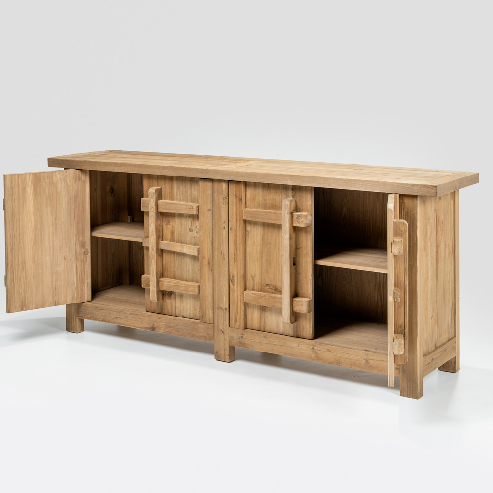 Acest bufet din pin natural învechit este o piesă cu un caracter autentic și texturat, ideală pentru spații rustice, country sau în stil natural. Finisajul învechit evidențiază fibra lemnului și imperfecțiunile acestuia, făcând fiecare piesă unică și plină de personalitate.