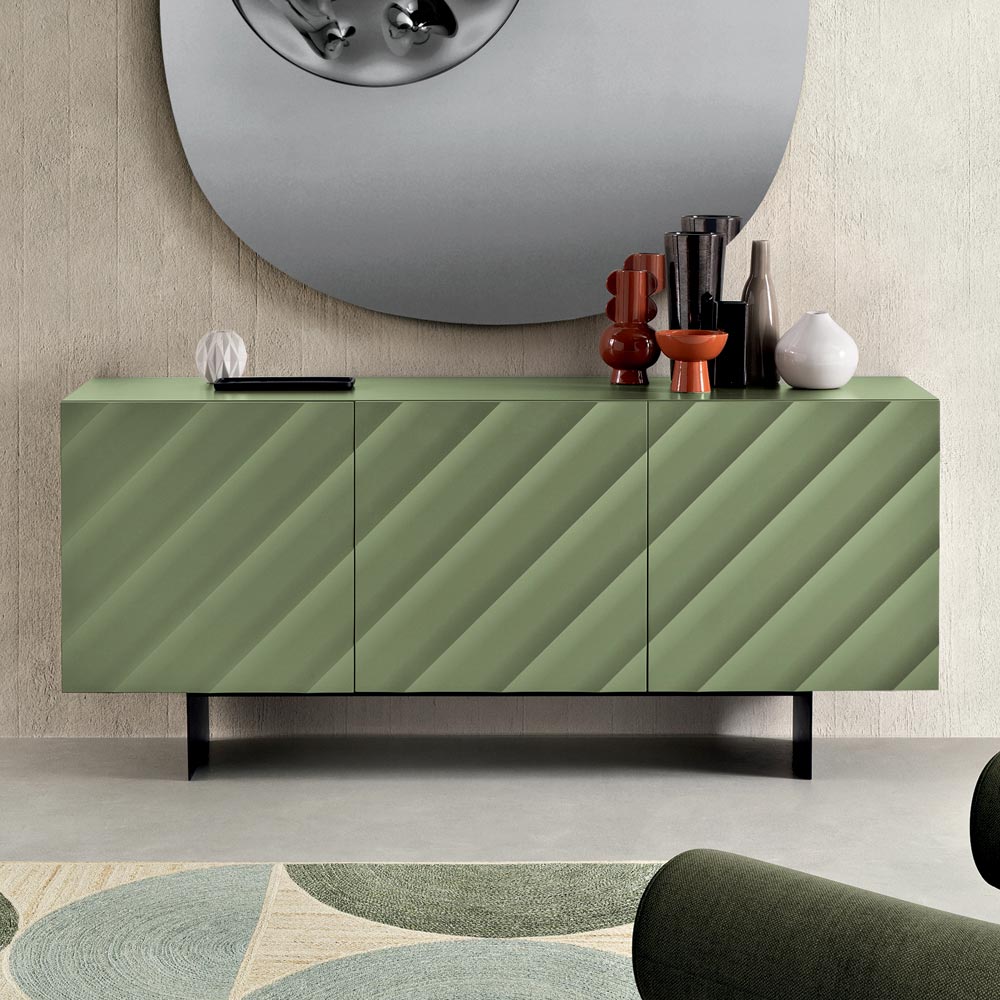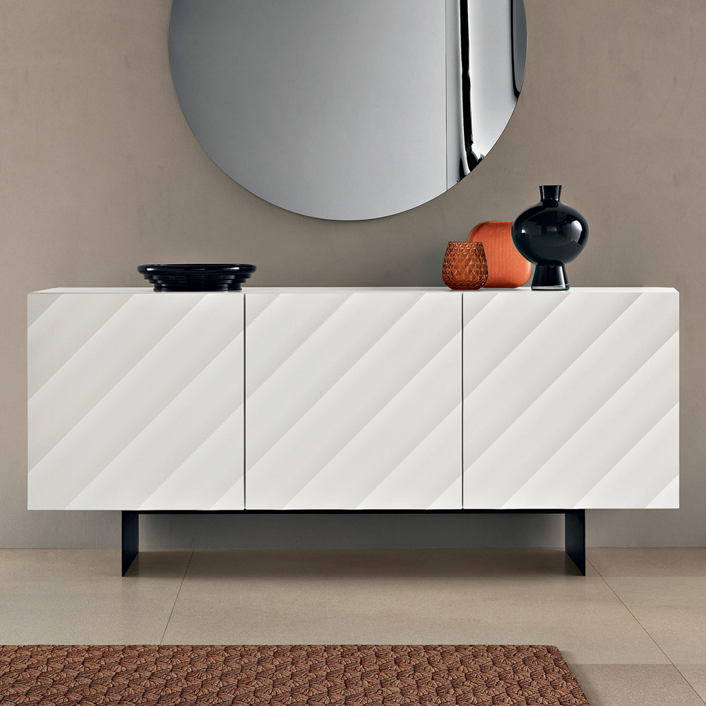 Un bufet elegant, fabricat în Italia , ideal pentru a mobila cu stil livingul sau zona de luat masa . Designul său contemporan se remarcă printr-un impact vizual puternic, transformând unitatea de depozitare într-un element cu adevărat decorativ.