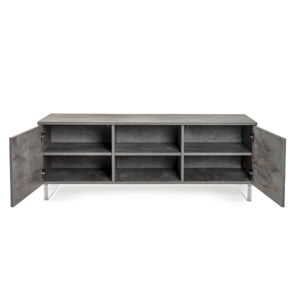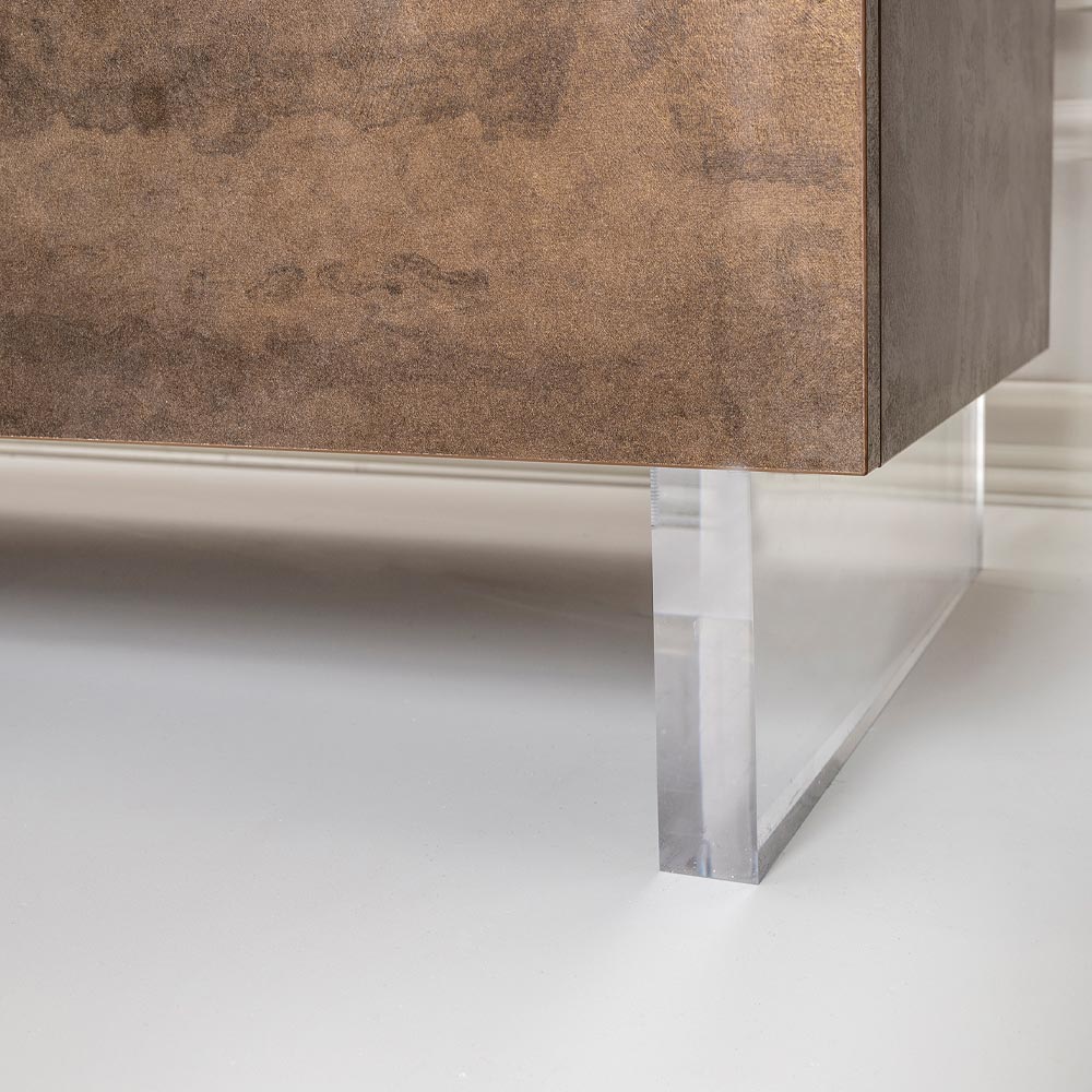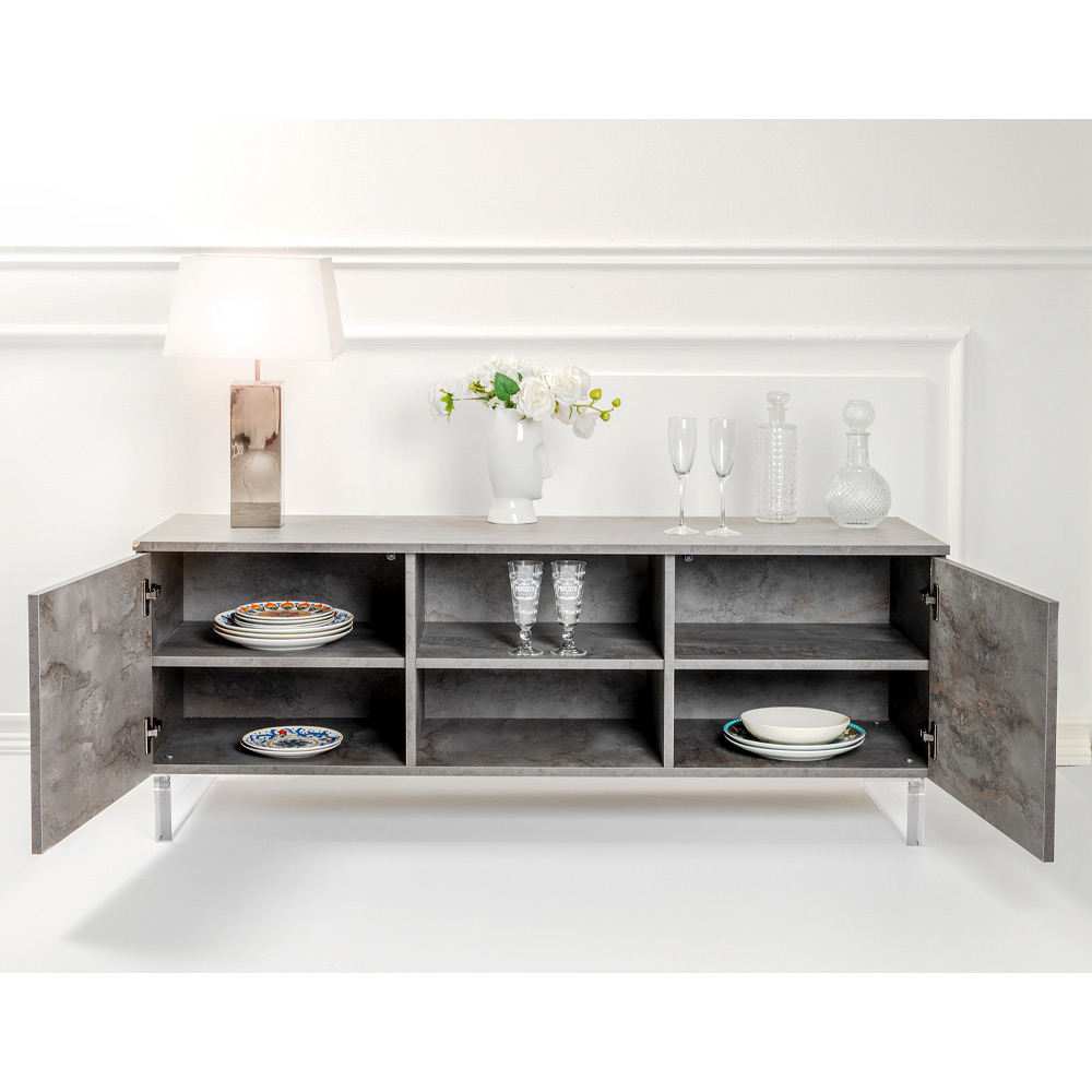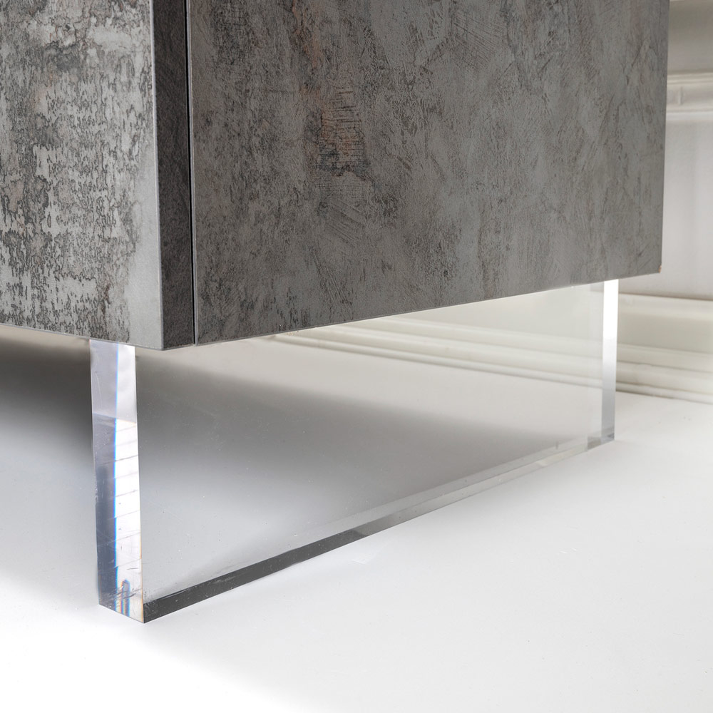 Suspendat pe picioare din plexiglas transparent, acest bufet ofera iluzia de a pluti in spatiu, aducand o lejeritate vizuala unica si surprinzatoare . Deschideți ușile cu balamale pentru a dezvălui un interior spațios, cu rafturi care așteaptă să găzduiască cărți, obiecte și amintiri, toate organizate cu eficiență maximă.