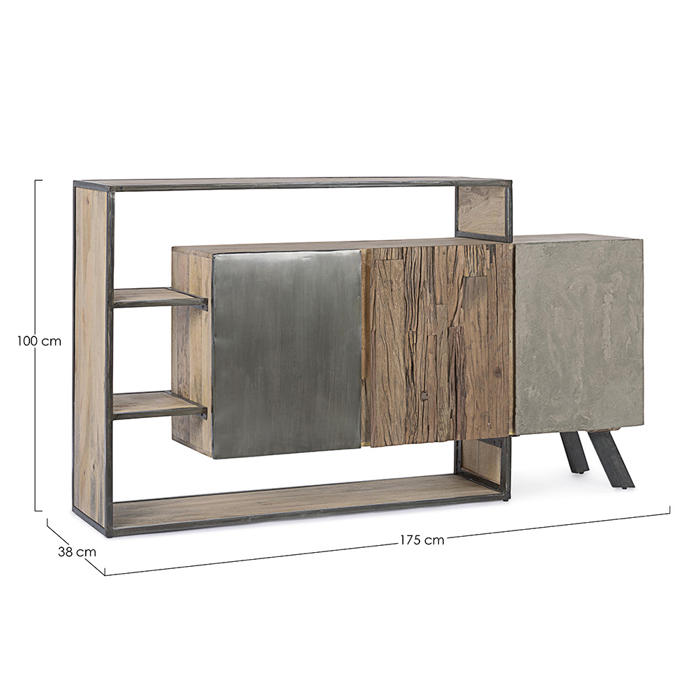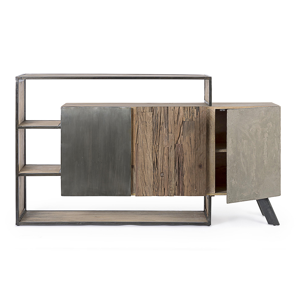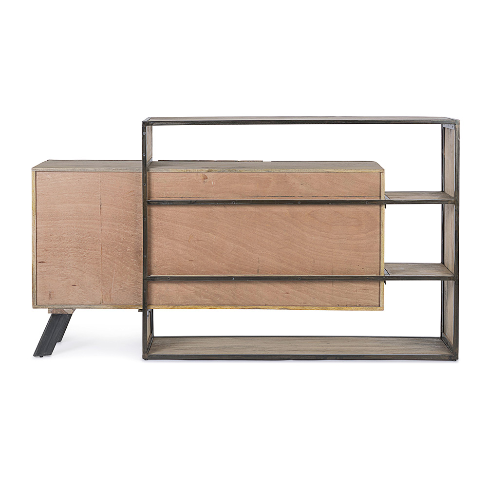 Acest bufet de design pentru living are o structură din lemn de mango și oțel cu spate din placaj.