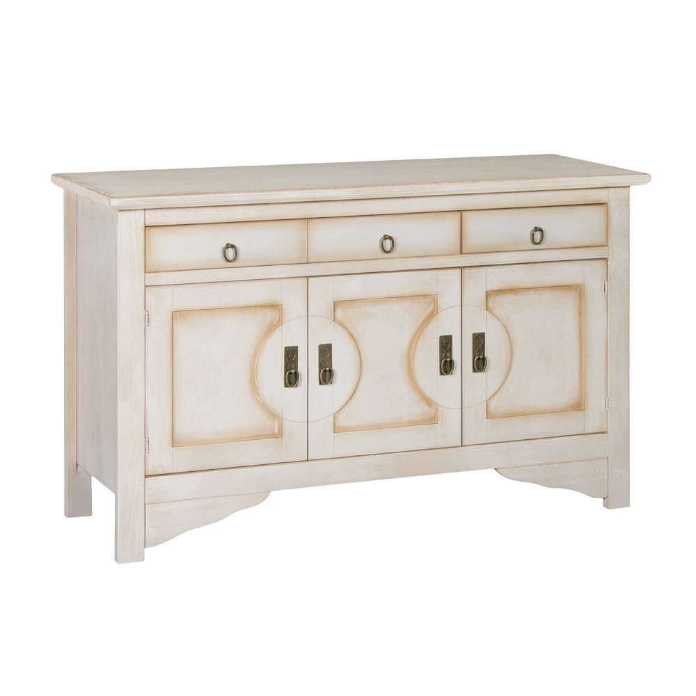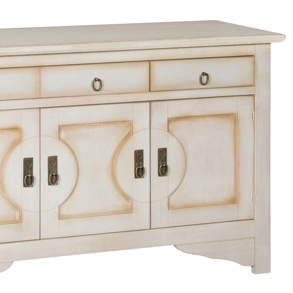 3 usi si 3 sertare. Prima ușă se deschide spre stânga, în timp ce centrală și a treia spre dreapta, referindu-se la piesa de mobilier orientată către persoană.