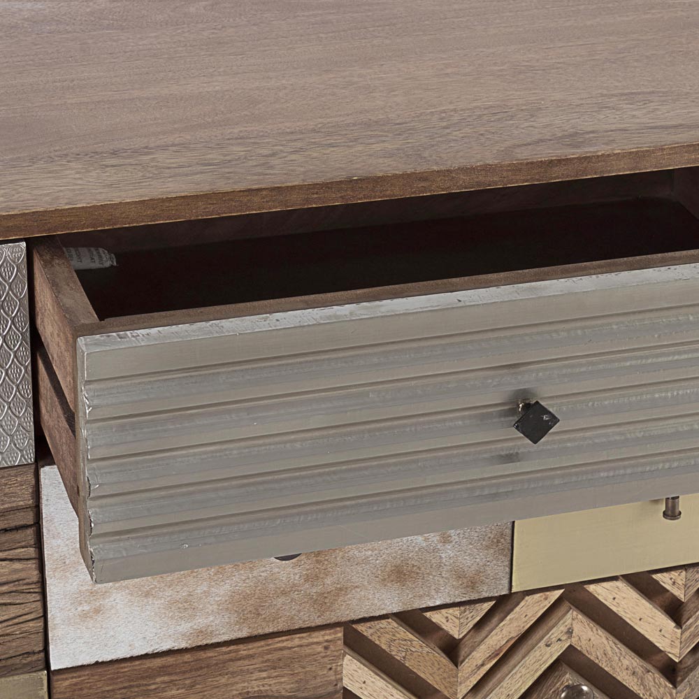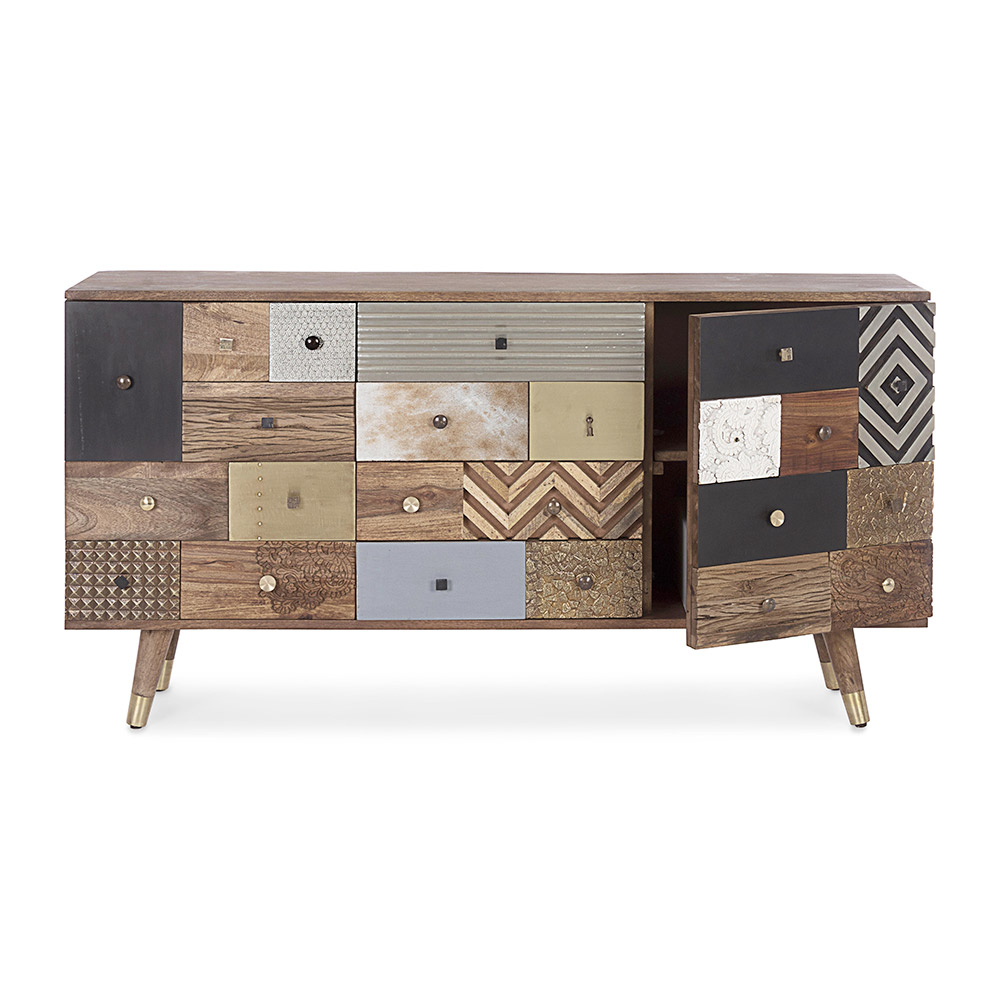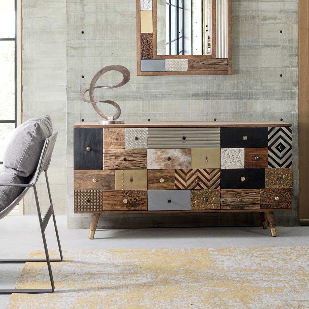 Bufetă din lemn de mango cu 2 uși și 4 sertare în stil etnic.