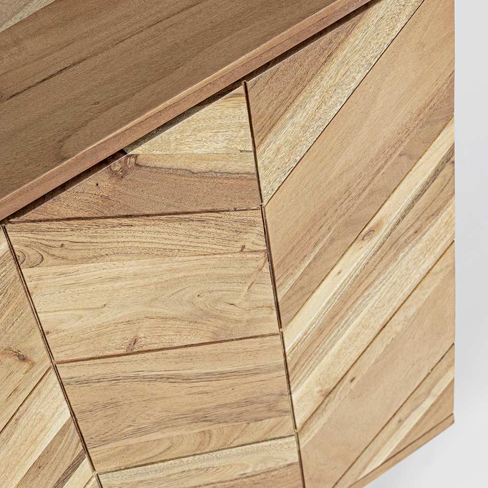 Bufetă din lemn de salcâm cu 2 uși și 3 sertare și picioare din oțel de design etnic.