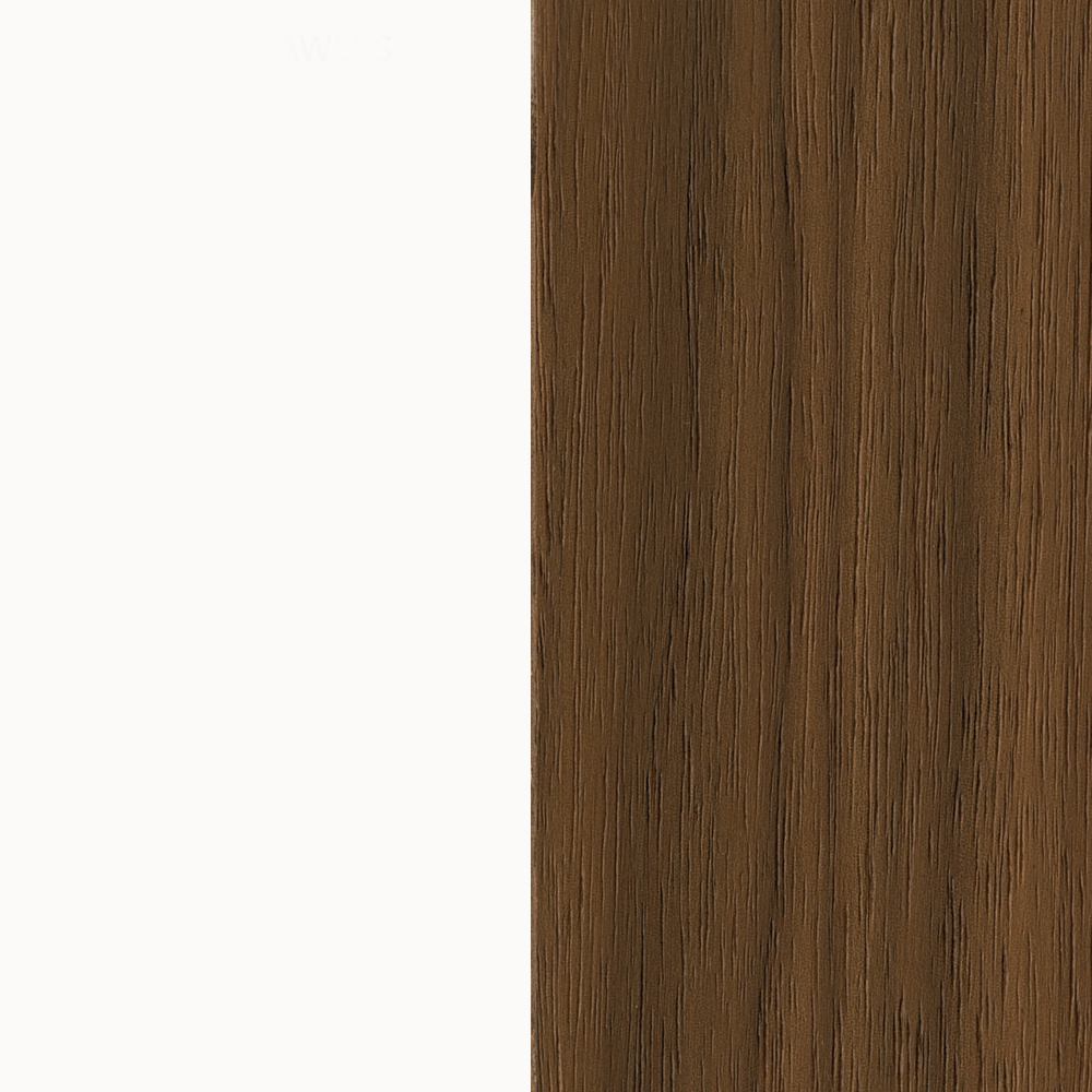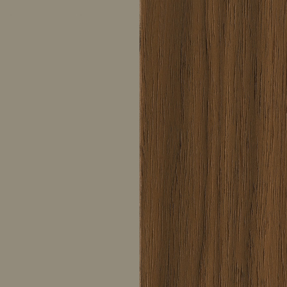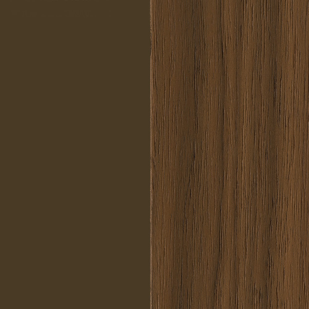 din lemn furniruit cu finisaj nuc Canaletto care iese în evidență delicat dincolo de blat, încadrându-l cu un splashback modelat.