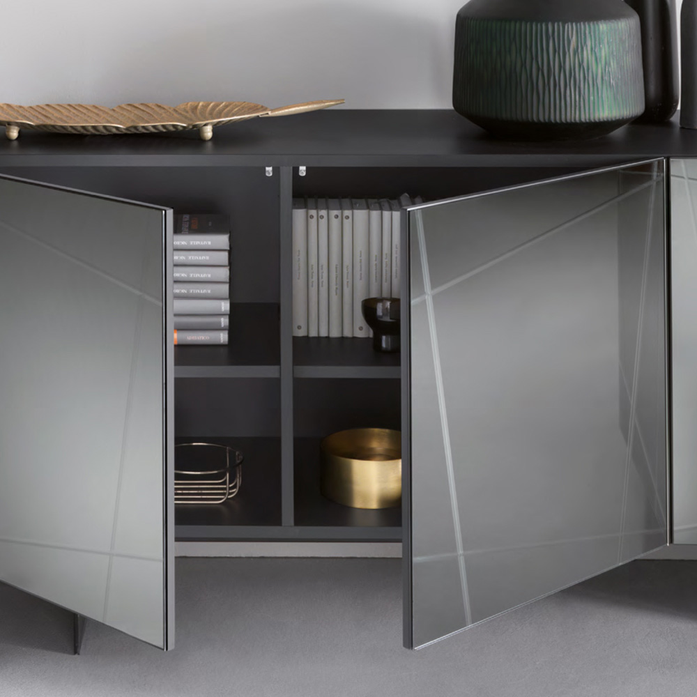 Bufetă modernă din melaminat cu uși acoperite cu oglindă Made in Italy.