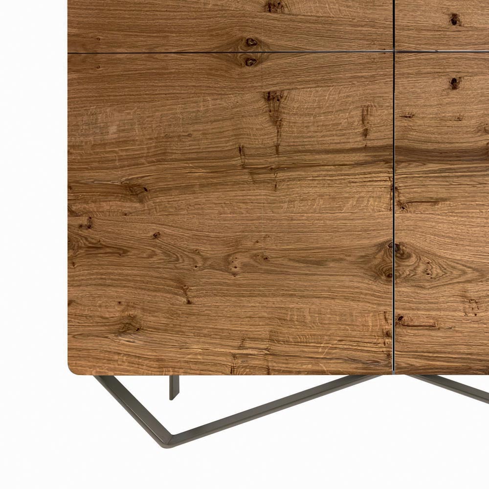 Bufeta sufragerie realizata integral in Italia compusa dintr-o baza cu 2 picioare de fier finisaj nichel , carcasa din mdf finisaj carbuni , spatar din lemn masiv complet cu 4 usi din lambriu de stejar cu noduri finisaj stejar country cu rafturi interioare din mdf . Folosirea materialelor simple dar rezistente transforma acest produs intr-o piesa de mobilier cu o mare versatilitate si un aspect atractiv si interesant .