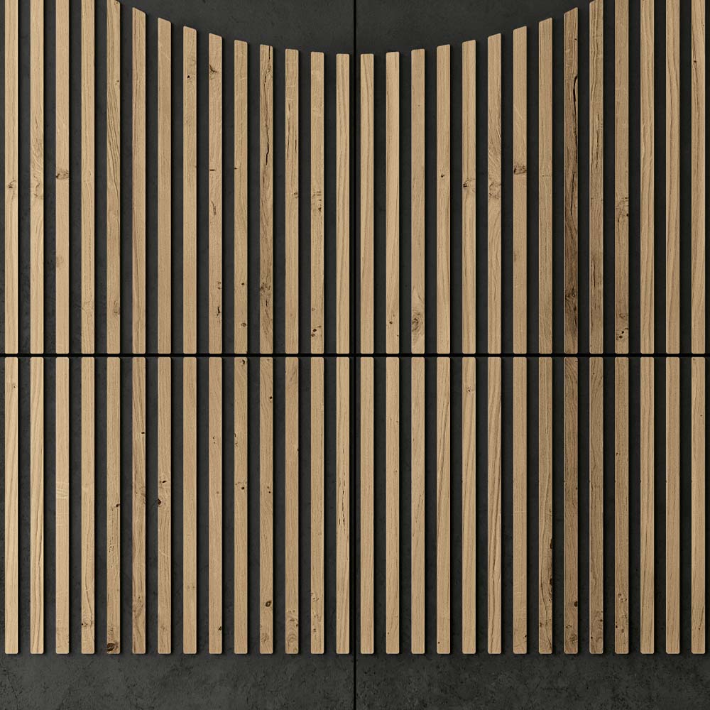 corp, rafturi interioare și uși din MDF cu finisaj cărbune și stejar înnodat, spate din placaj și