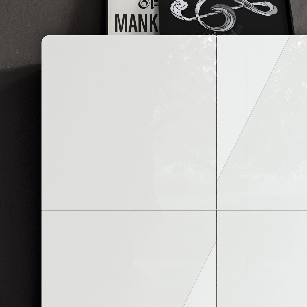 usi finisaj sticla alba cu insertii albe , in intregime Made in Italy. Produsul face parte din noua linie de produse moderne realizate cu respect pentru natura. Acest bufet elegant se caracterizează prin funcționalitatea și calitatea înaltă a măiestriei italiene.