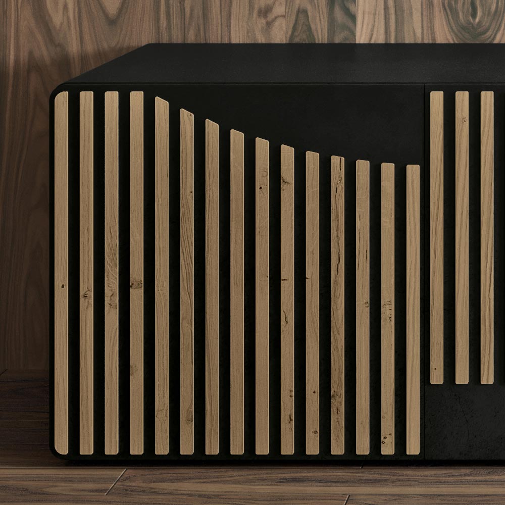 Bufetă pentru living cu 3 uși cu lamele verticale realizate cu