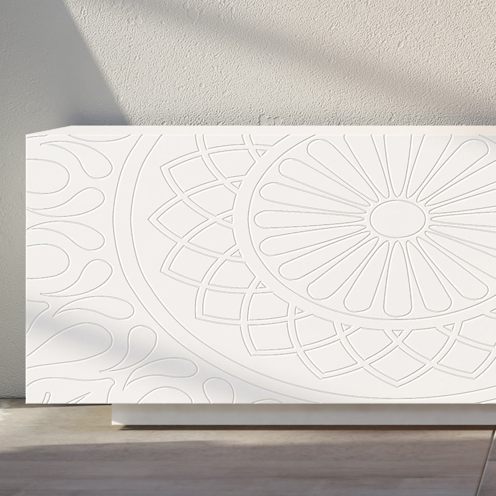 Bufetă pentru living din MDF alb și uși decorate Made in Italy.