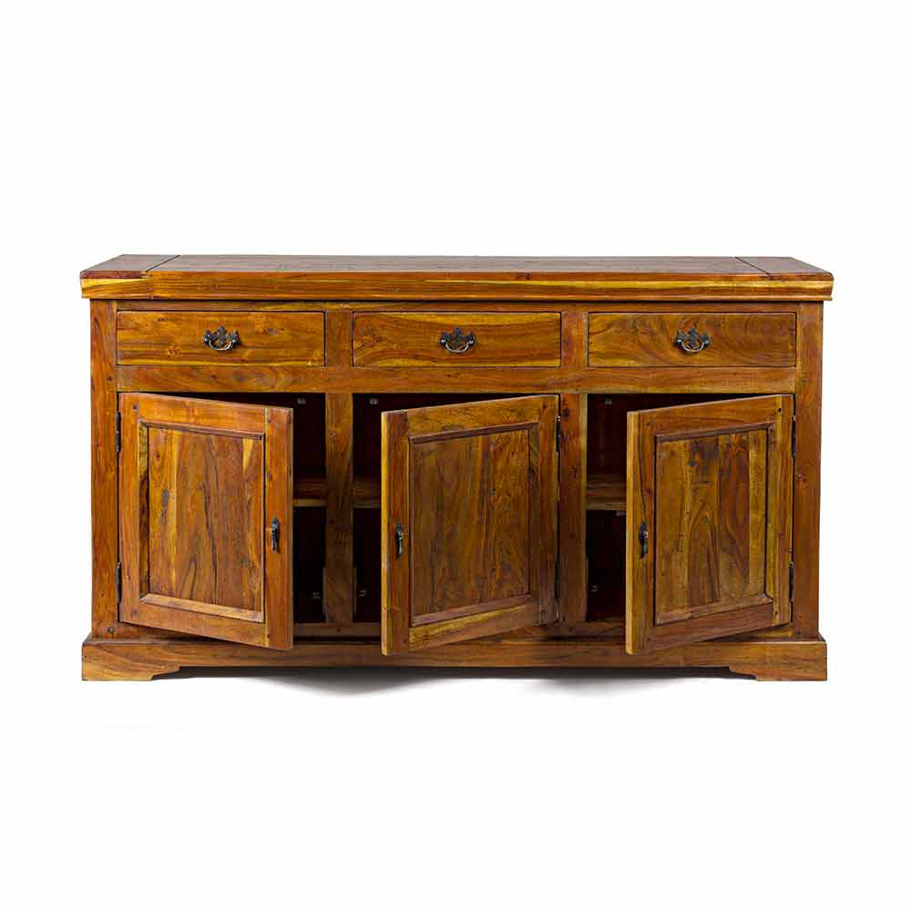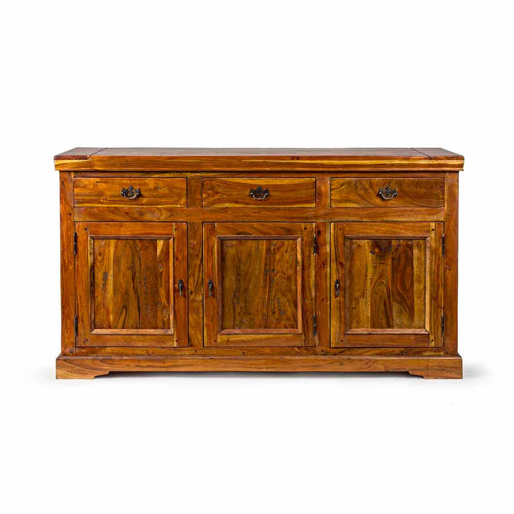 Buffet cu design clasic, finisaj rustic din lemn de salcâm masiv - Malaya