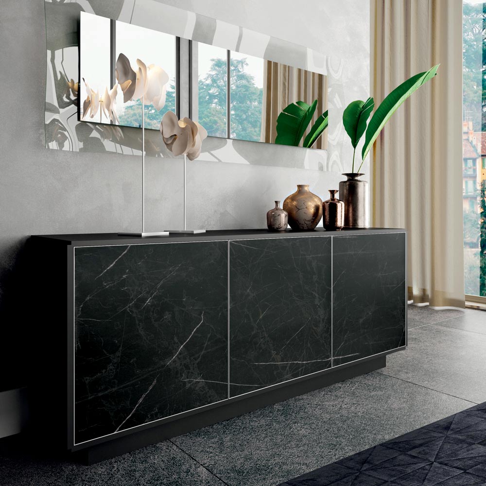 Bufeta din lemn lacuit cu usi laminate HPL cu efect de marmura Made in Italy.