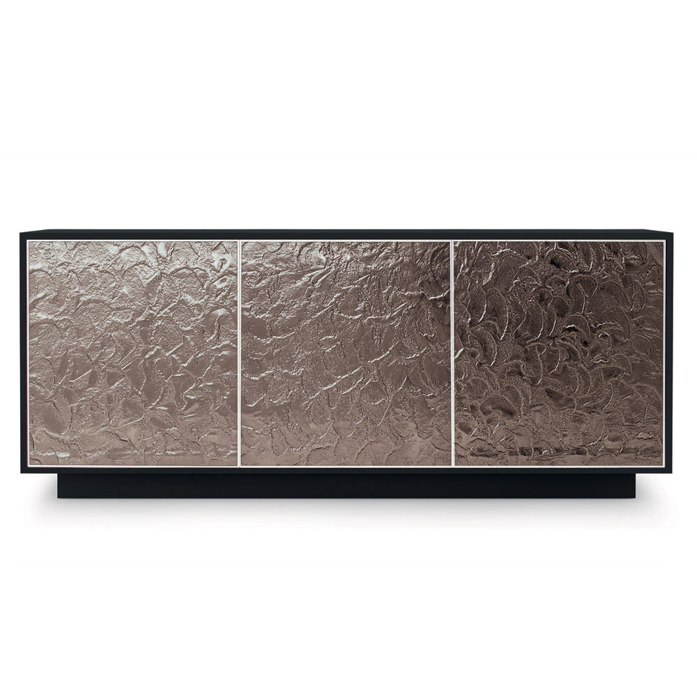 Bufeta din lemn lacuit negru mat cu usi din sticla lucrata Made in Italy.