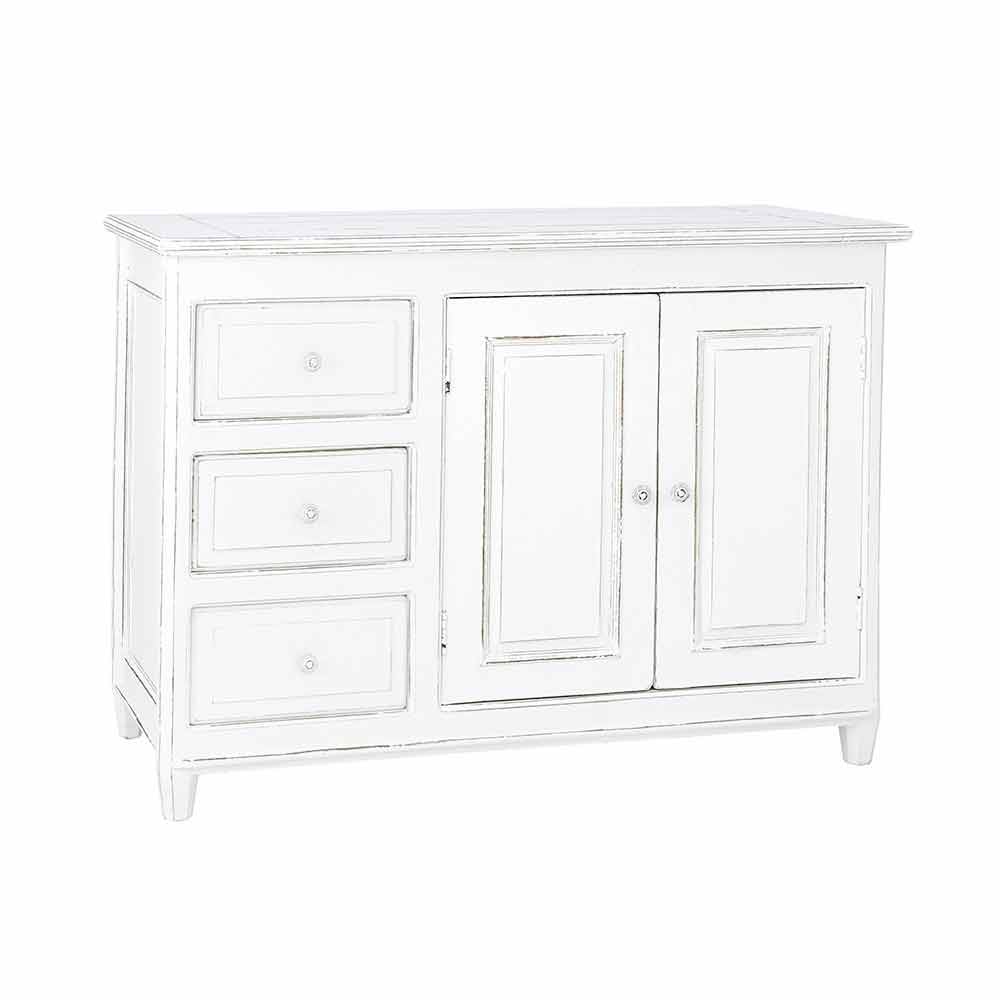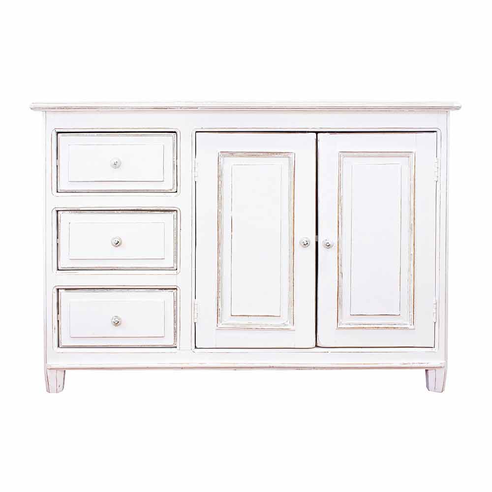 Buffet în stil rustic cu structură din lemn masiv de mango vopsit în alb.