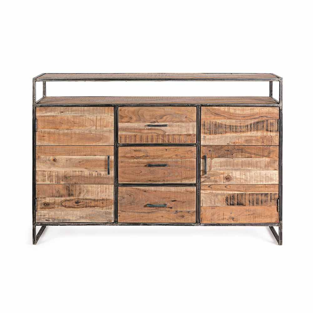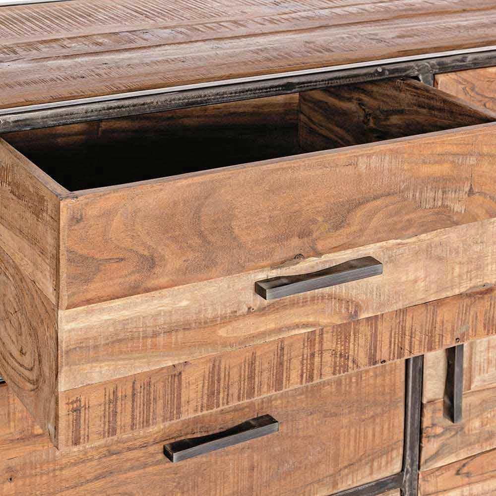 Buffet în stil industrial din lemn de salcâm și oțel.
