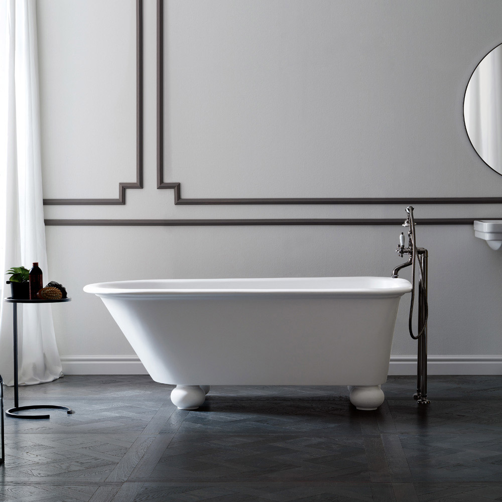 Cada albă din Solid Surface , un amestec de rășină acrilică modificată cu compuși minerali într- o culoare albă opac . Cada dedicată iubitorilor de tradițională cadă cu gheare. Amestecul de compoziție permite să iasă această culoare caracteristică. Acest amestec este, de asemenea , foarte regenerabil, omogen și 100% neporos și, prin urmare, impermeabil.