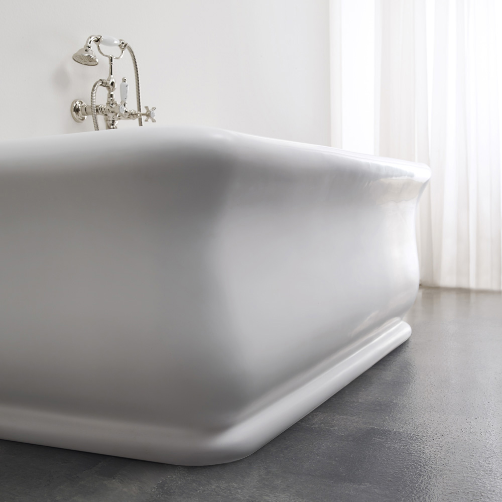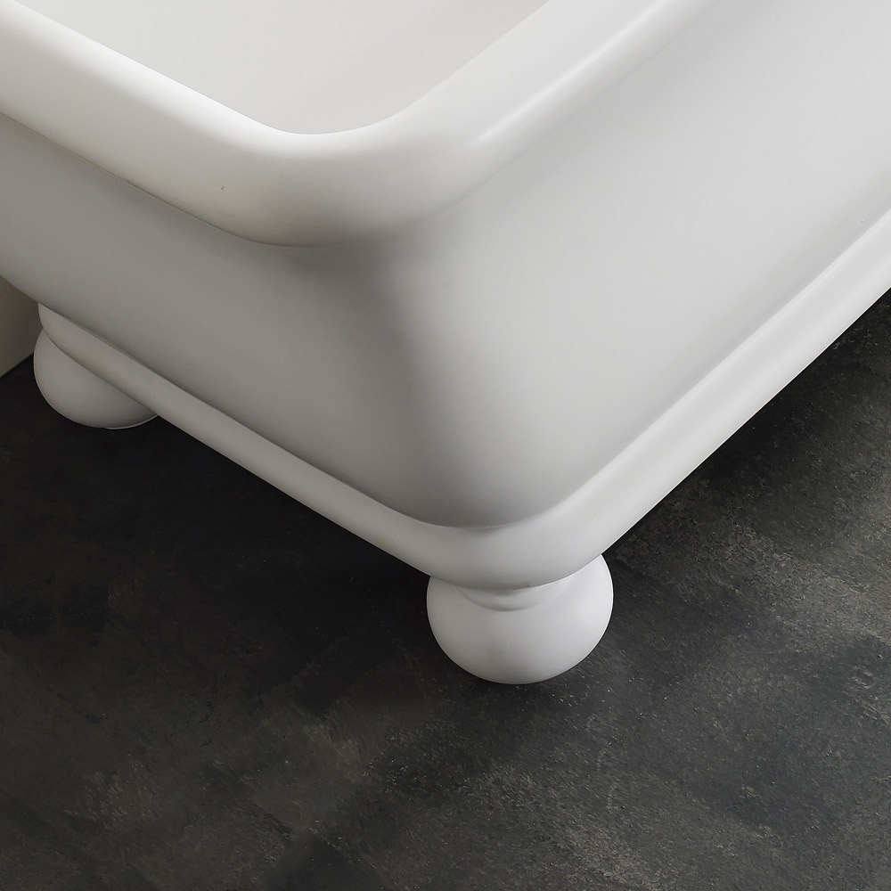Cada albă dreptunghiulară cu colțuri moi din Solid Surface Made in Italy