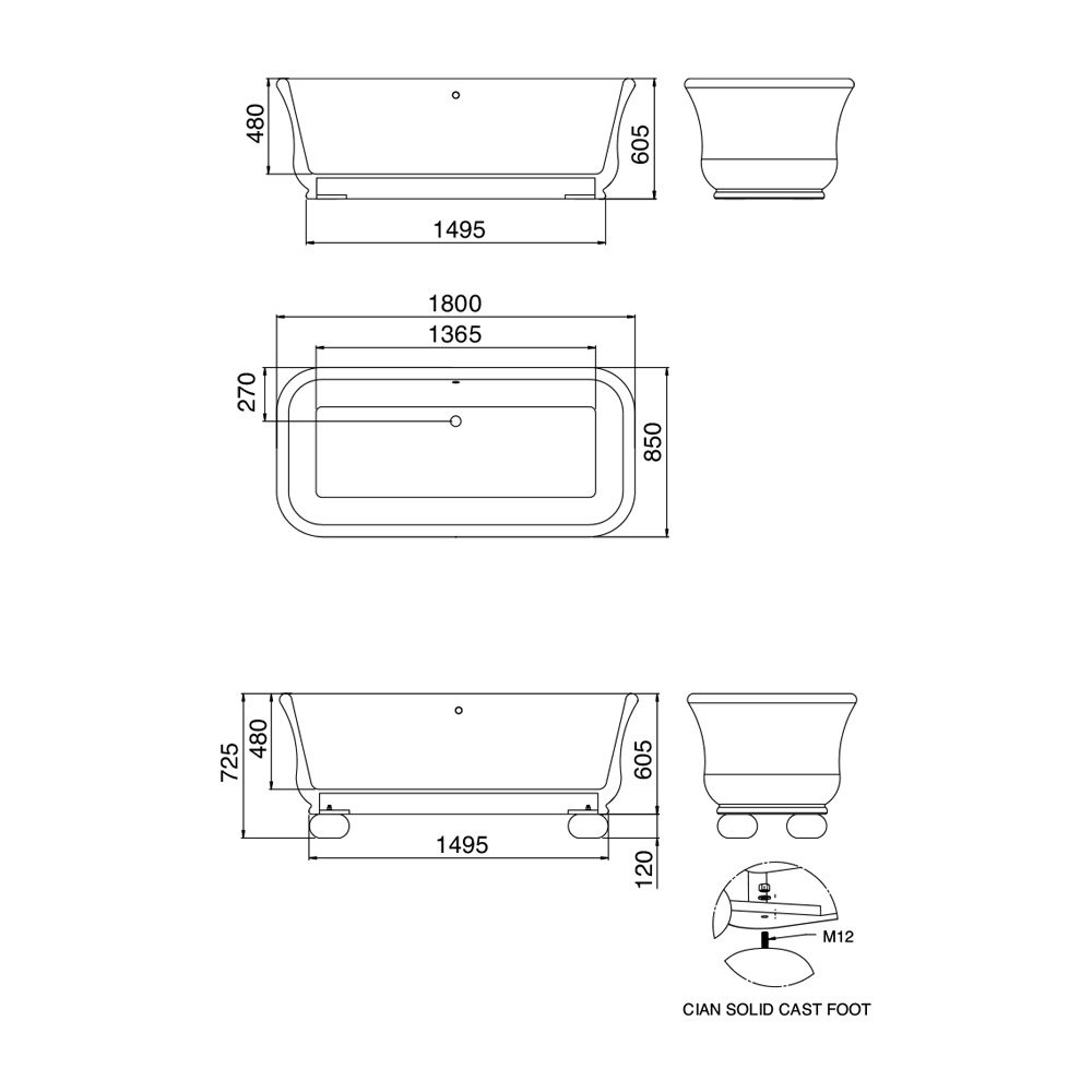 NB: Robinetele, sifonul si accesoriile nu sunt incluse in pret. Daca doriti sa le achizitionati sau sa va personalizati cada din punct de vedere al finisajelor si dimensiunilor, nu ezitati sa ne contactati folosind formularul corespunzator „ Cerere Informatii ”.