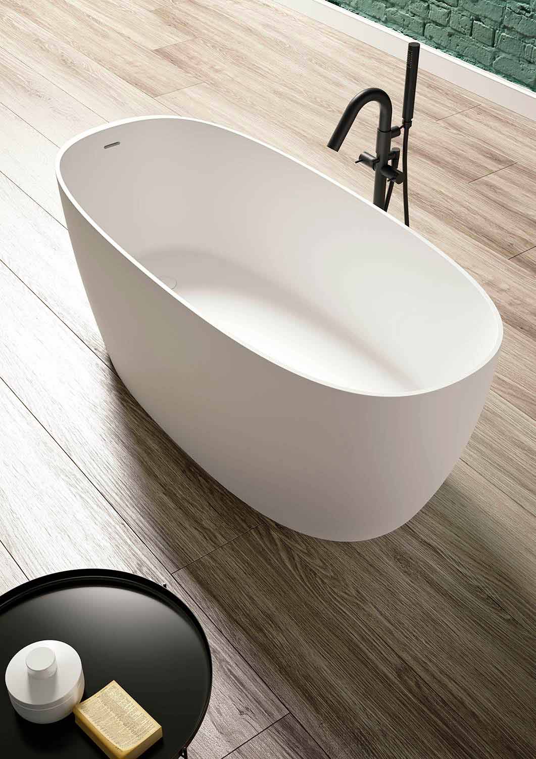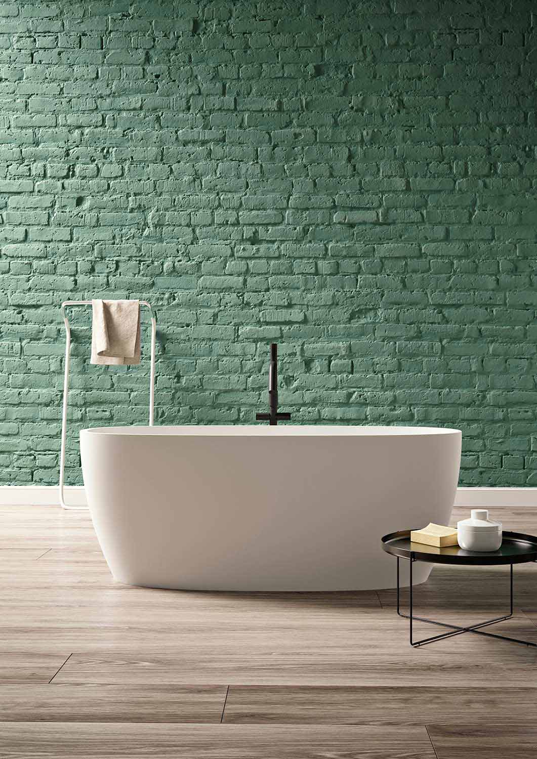oferă designului o gamă nelimitată de posibilități tehnice și estetice . Pielea lui mătăsită și caldă, combinată cu aspectul său mineral și indicarea reflexiei luminii, îl fac un material capabil să transforme orice element în protagonistul băii.