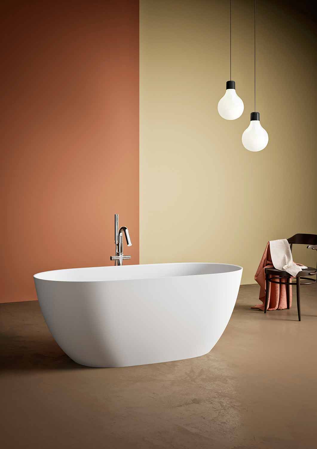 oferă designului o gamă nelimitată de posibilități tehnice și estetice . Pielea lui mătăsită și caldă, combinată cu aspectul său mineral și indicarea reflexiei luminii, îl fac un material capabil să transforme orice element în protagonistul băii.