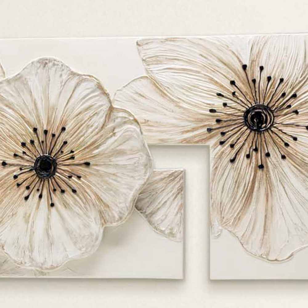 Material floral pe structură dublă cu element central aplicat. Decoratiuni manuale cu acrilici, culori de ceara si rasini.