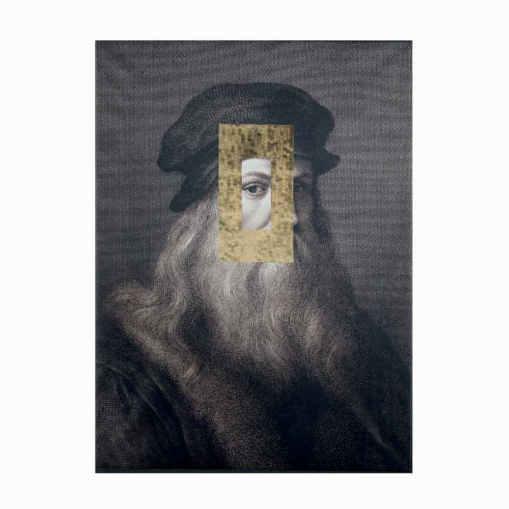 Pictură de perete modernă realizată în Italia din lemn cu pânză imprimată care îl înfățișează pe Leonardo da Vinci și îmbogățită cu un decor dreptunghiular în foiță de aur . Eleganța designului întâlnește rafinamentul materialelor pentru a da viață unui complement original care poate completa mobilierul de casă într-un mod exclusiv și cu o puternică personalitate modernă . O idee de amenajare extrem de originală capabilă să îmbogățească orice spațiu din casă cu personalitate și eleganță, aducând cu ea toată vioiciunea imprimărilor creative și tehnicilor noi și dovedindu-se o soluție perfectă pentru cei care caută un stil creativ și excentric pentru pereții din casa lor.