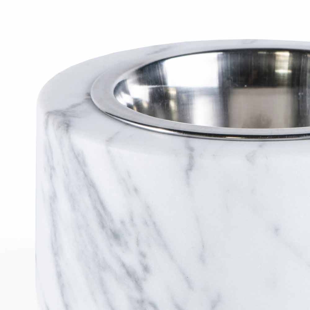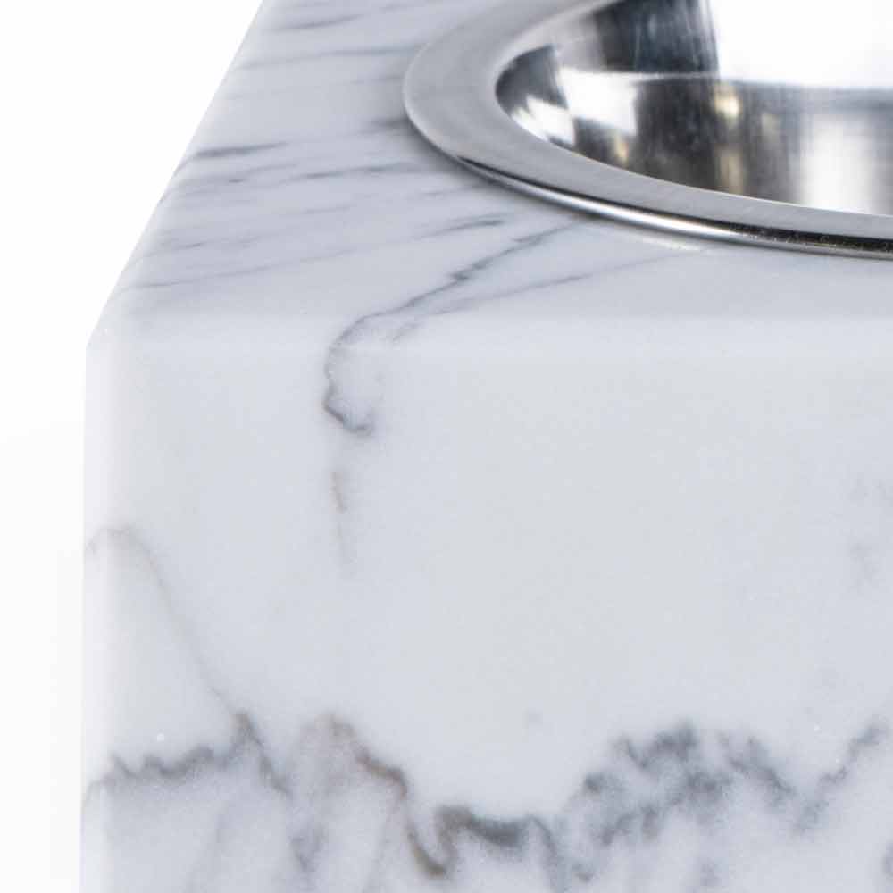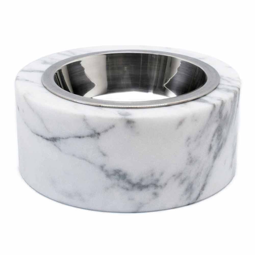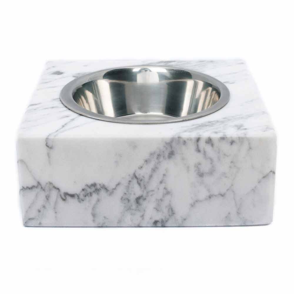 Bol pentru câini și pisici caracterizat prin marmura albă de Carrara din care este compusă. Este o piesă unică , deoarece fiecare bloc de marmură utilizat diferă de celelalte pentru vene și nuanțe.