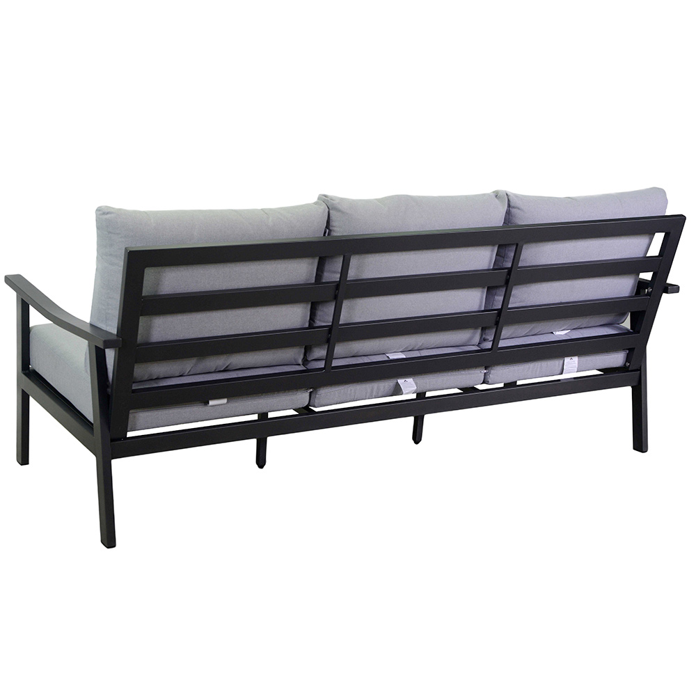 Descoperiți eleganța atemporală și confortul cu salonul nostru din aluminiu antracit . Fiecare piesă este concepută pentru a oferi relaxare absolută datorită pernelor ultra-moale din țesătură gri deschis care invită la momente de bunăstare pură. Cadrul robust din aluminiu asigură durabilitatea și stabilitatea , ideale pentru utilizarea zilnică în aer liber.