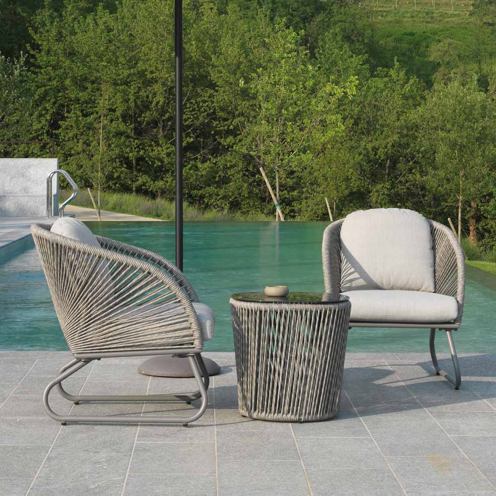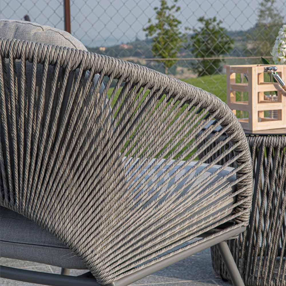 Descoperiți farmecul și confortul livingului nostru , o fuziune perfectă de stil și funcționalitate pentru spațiul dvs. exterior. fotoliile oferă un confort superior cu pernele lor capitonate în nuanțe de gri, ideale pentru momente lungi de relaxare sub soare sau sub stele.