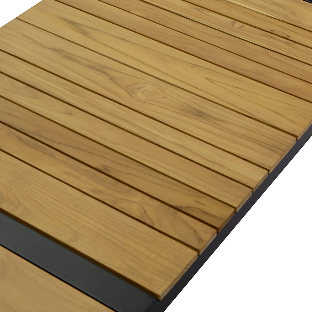 1 masă de cafea: cadru din aluminiu ruginit acoperit cu pulbere de culoare antracit și blat din lemn TEAK din Brazilia.